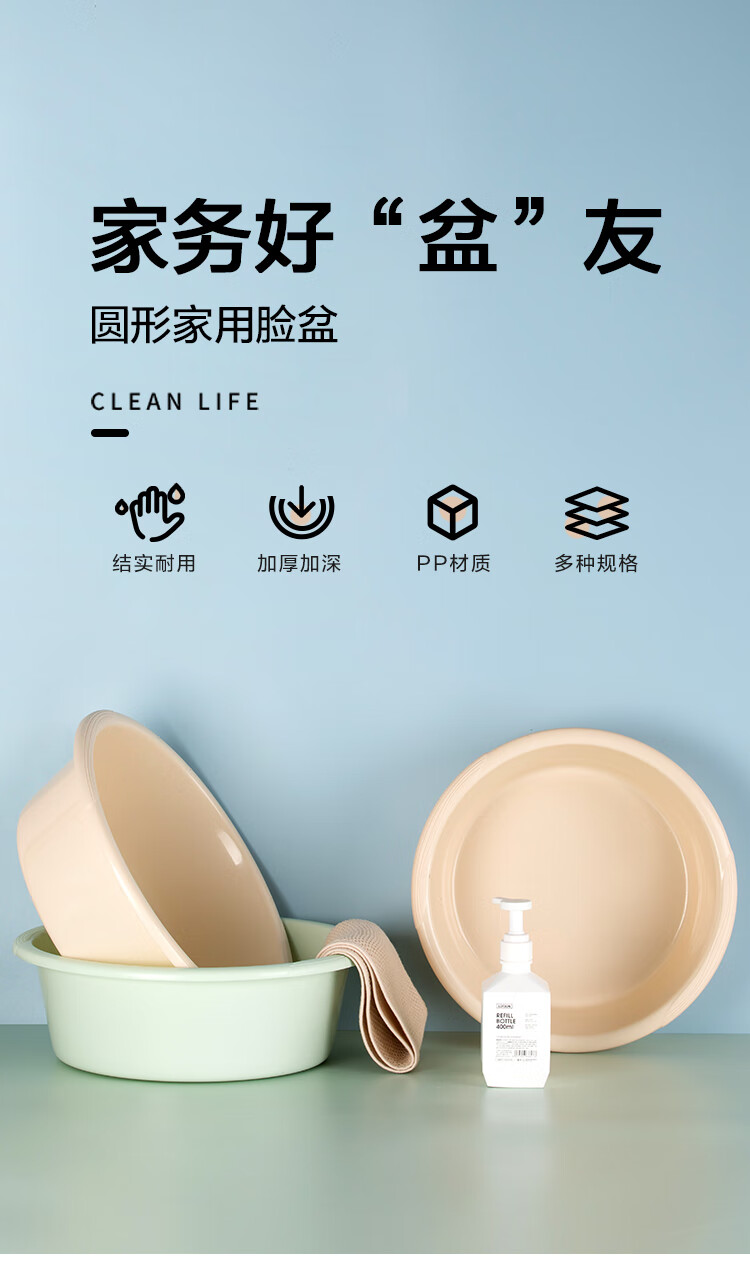 茶花(CHAHUA) 脸盆 大号加厚 36cm*1 米黄色(单位:个)