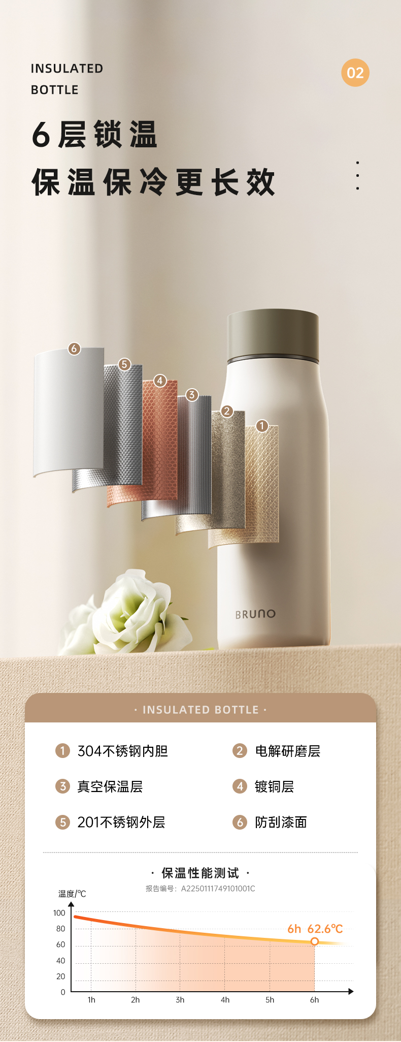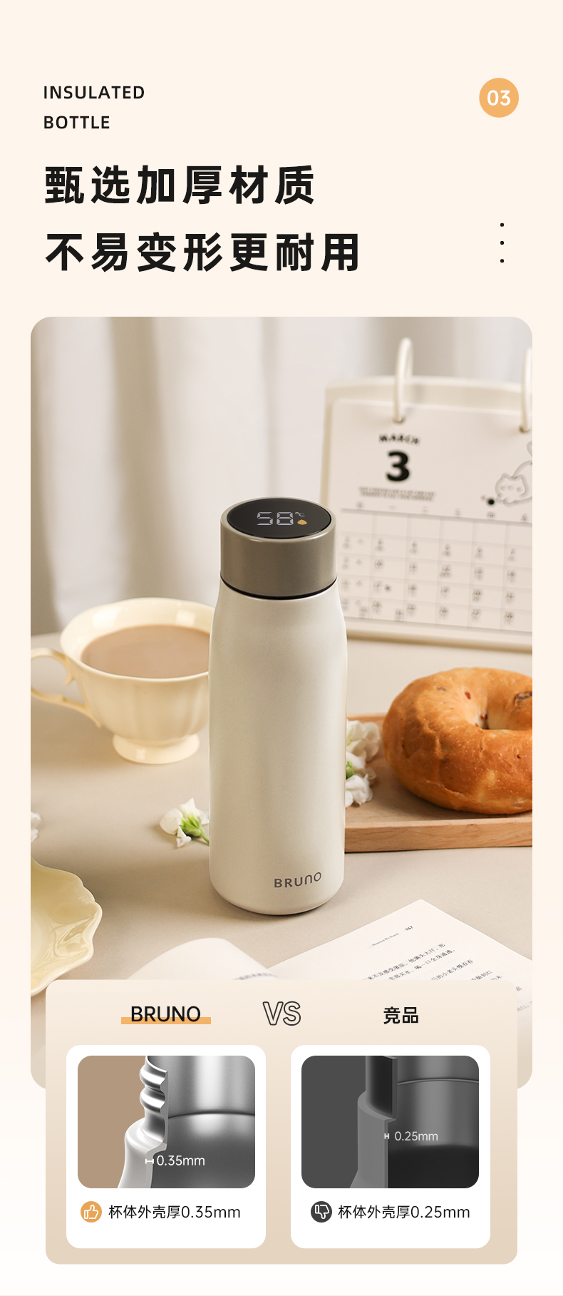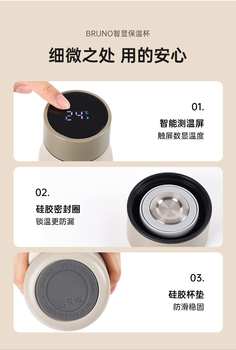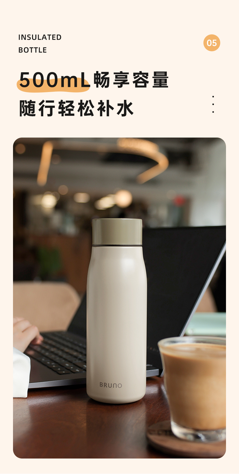 BRUNO BZK-BWB05S01-WGY 500ML 保温杯 灰色(单位:个)