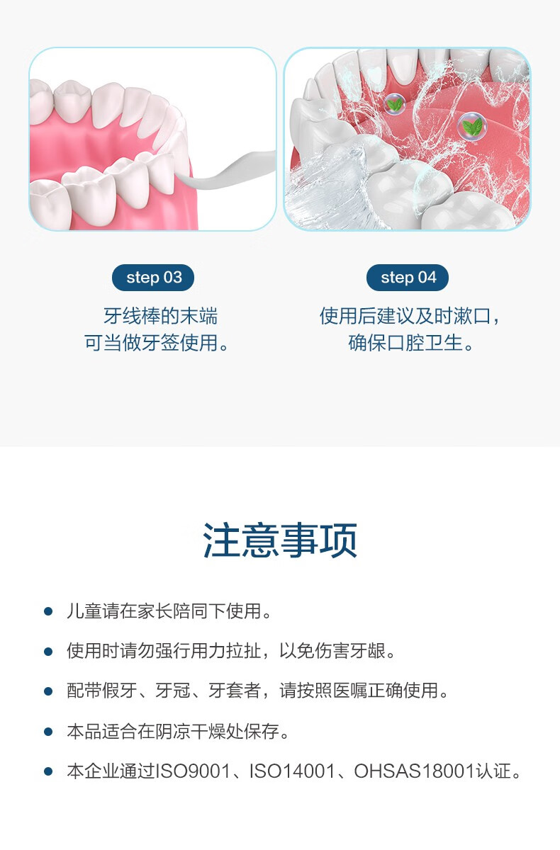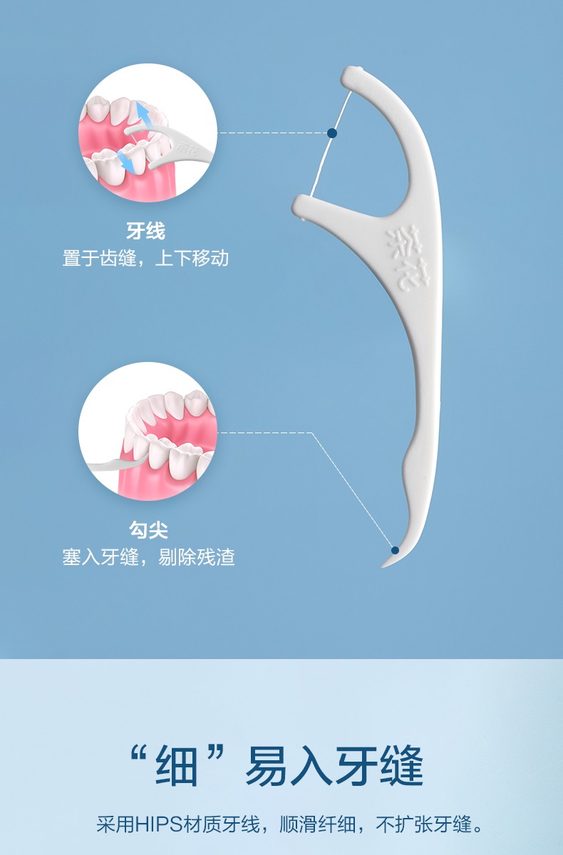 茶花(CHAHUA) 细滑牙线棒 G14007 50个 白色(单位:袋)