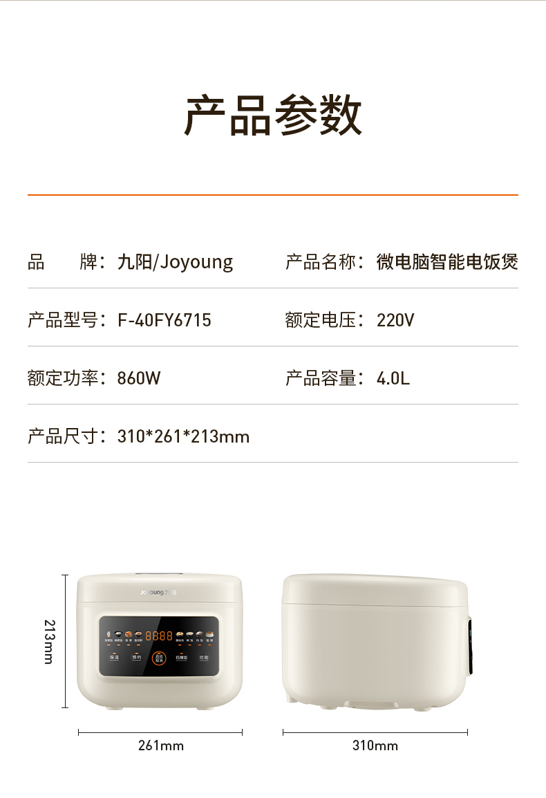 九阳(Joyoung) F-40FY6715 4L 电饭煲 白色(单位:个)
