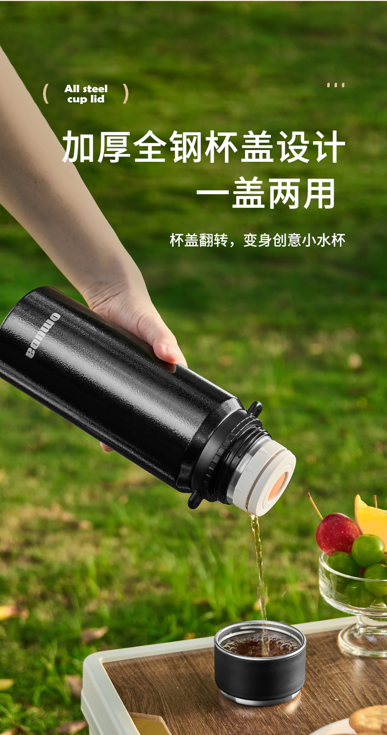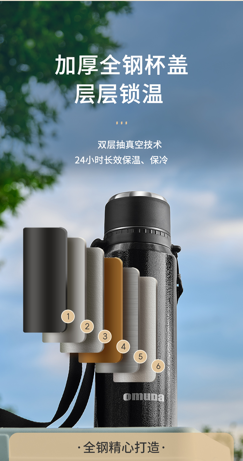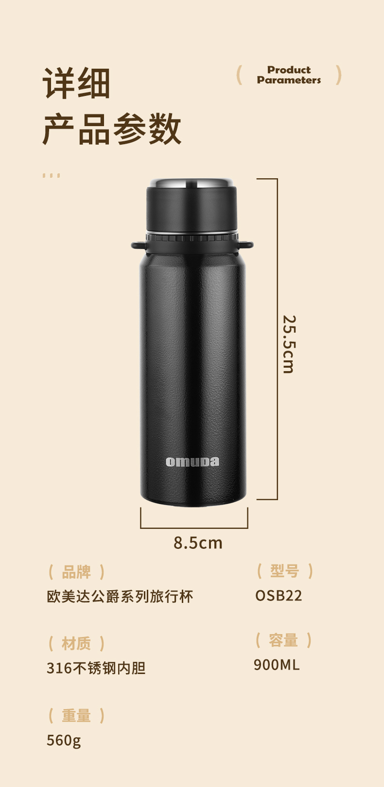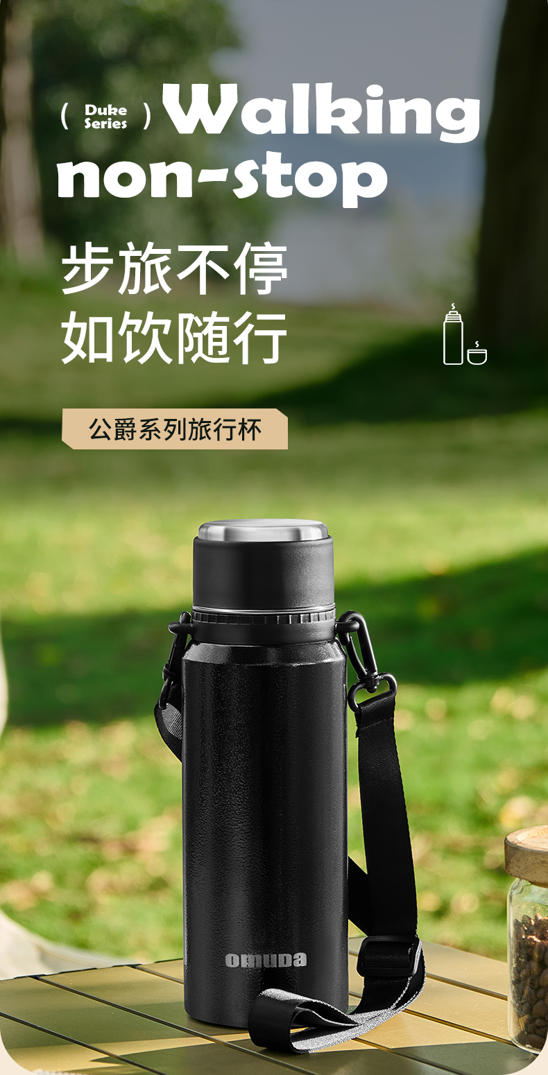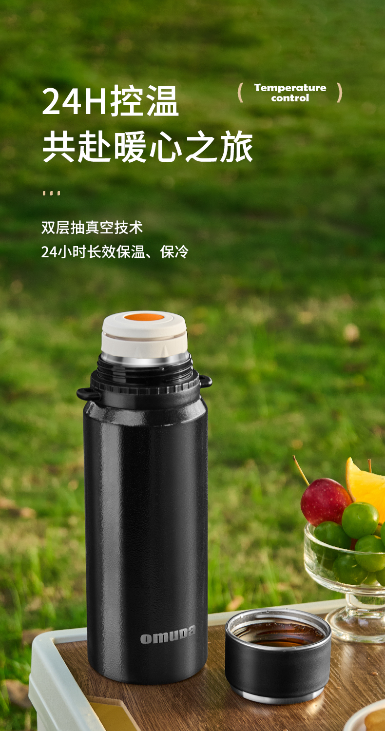 欧美达(omuDa) OSB22 900ml 内316户外保温水壶 曜石黑(单位:个)