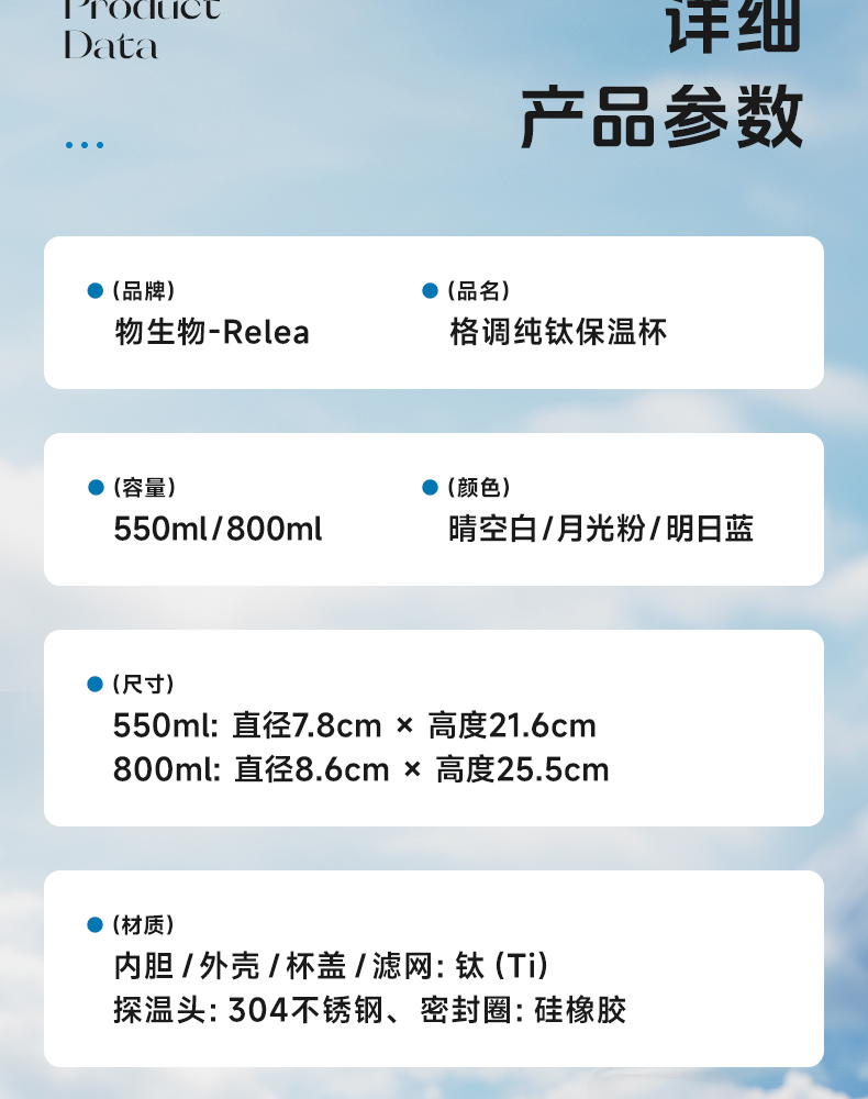 物生物(RELEA) 格调纯钛保温杯+皮质杯套 JV012484-0800-BS00 800ML 晴空白(单位:个)