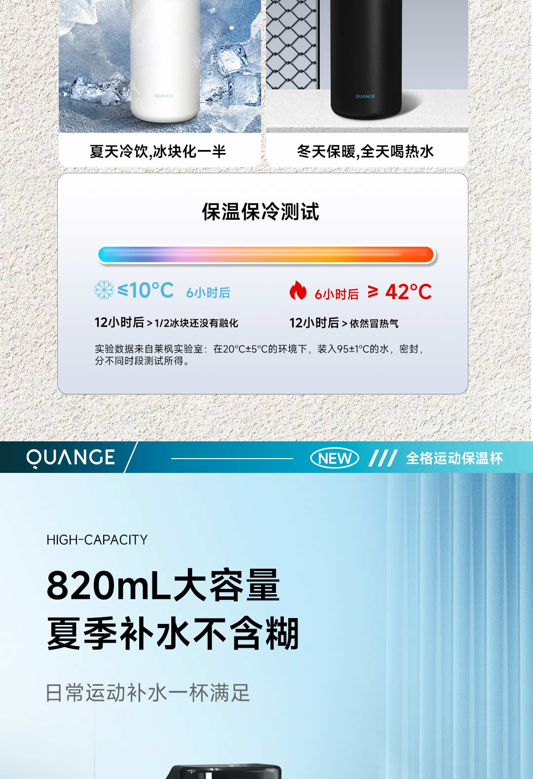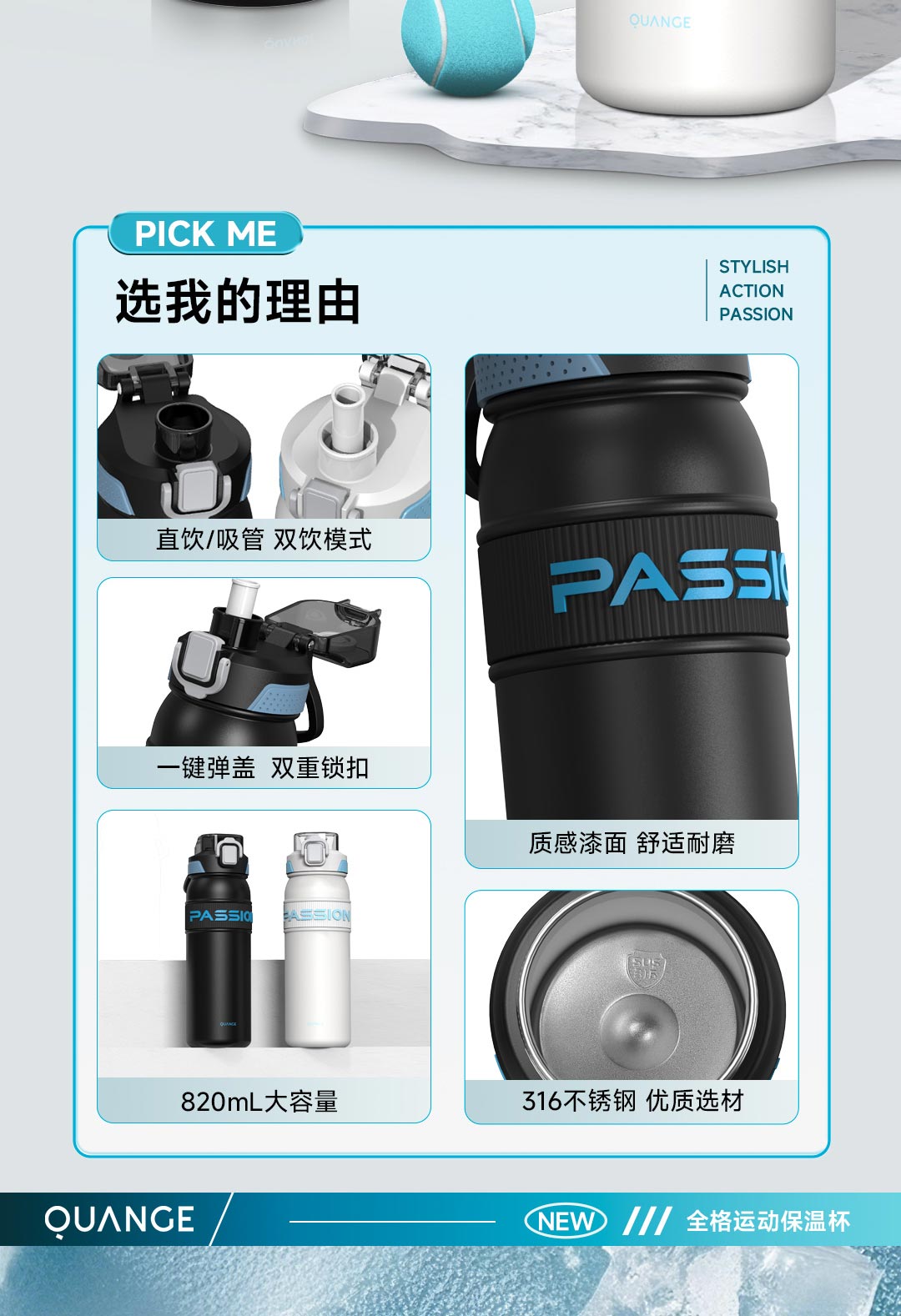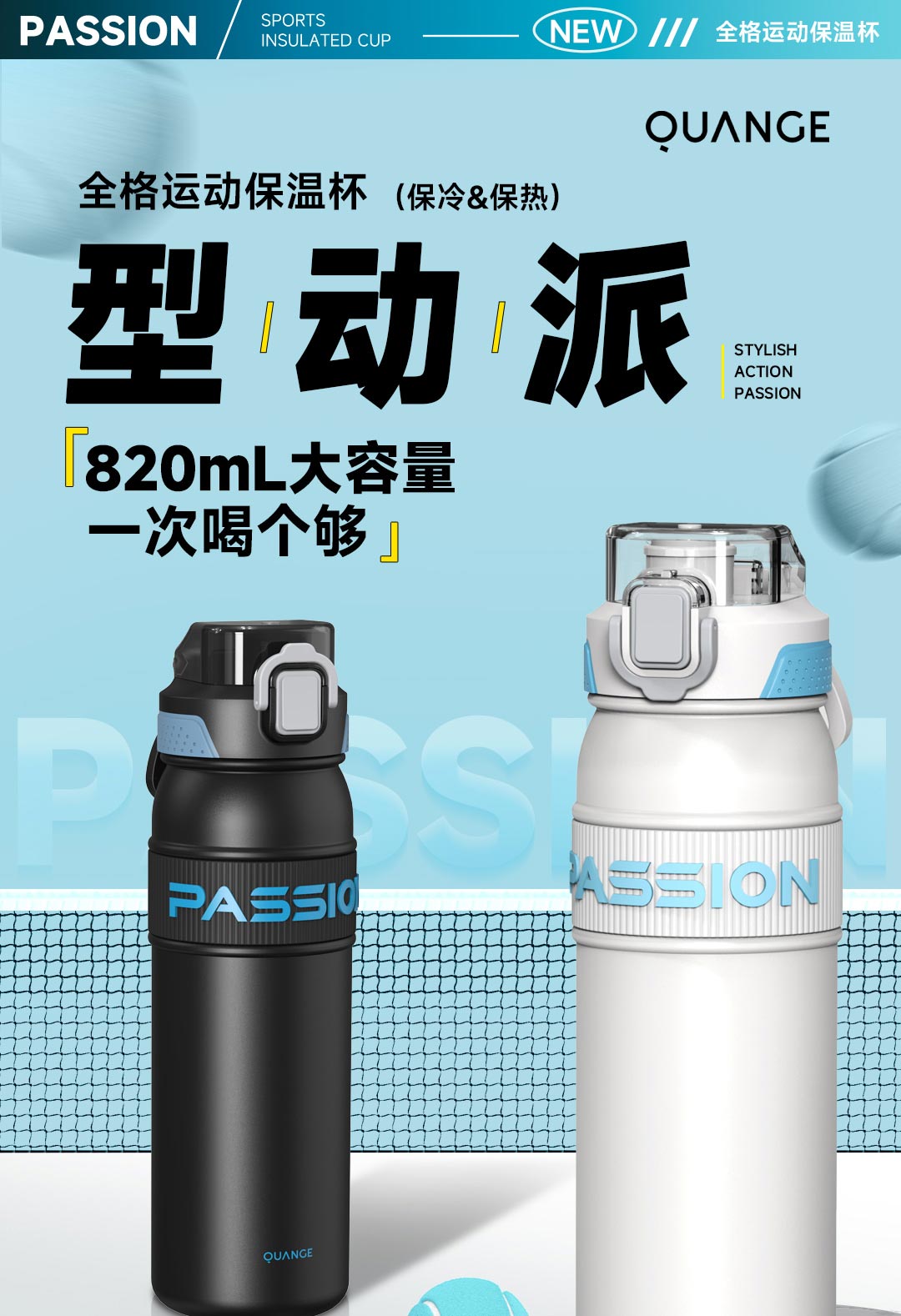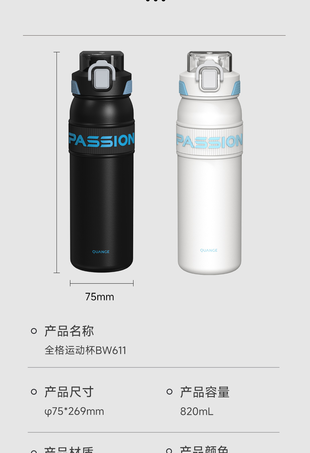 全格(Quange) BW611-820 820ml 弹盖保温杯 白色(单位:个)