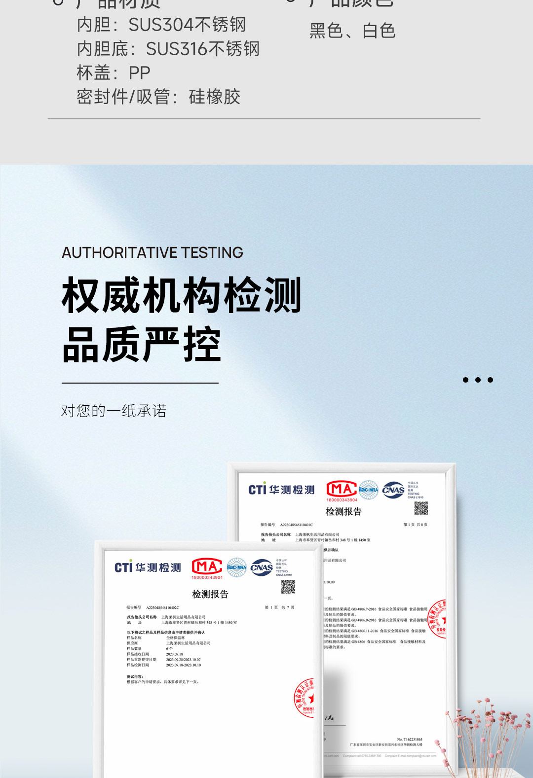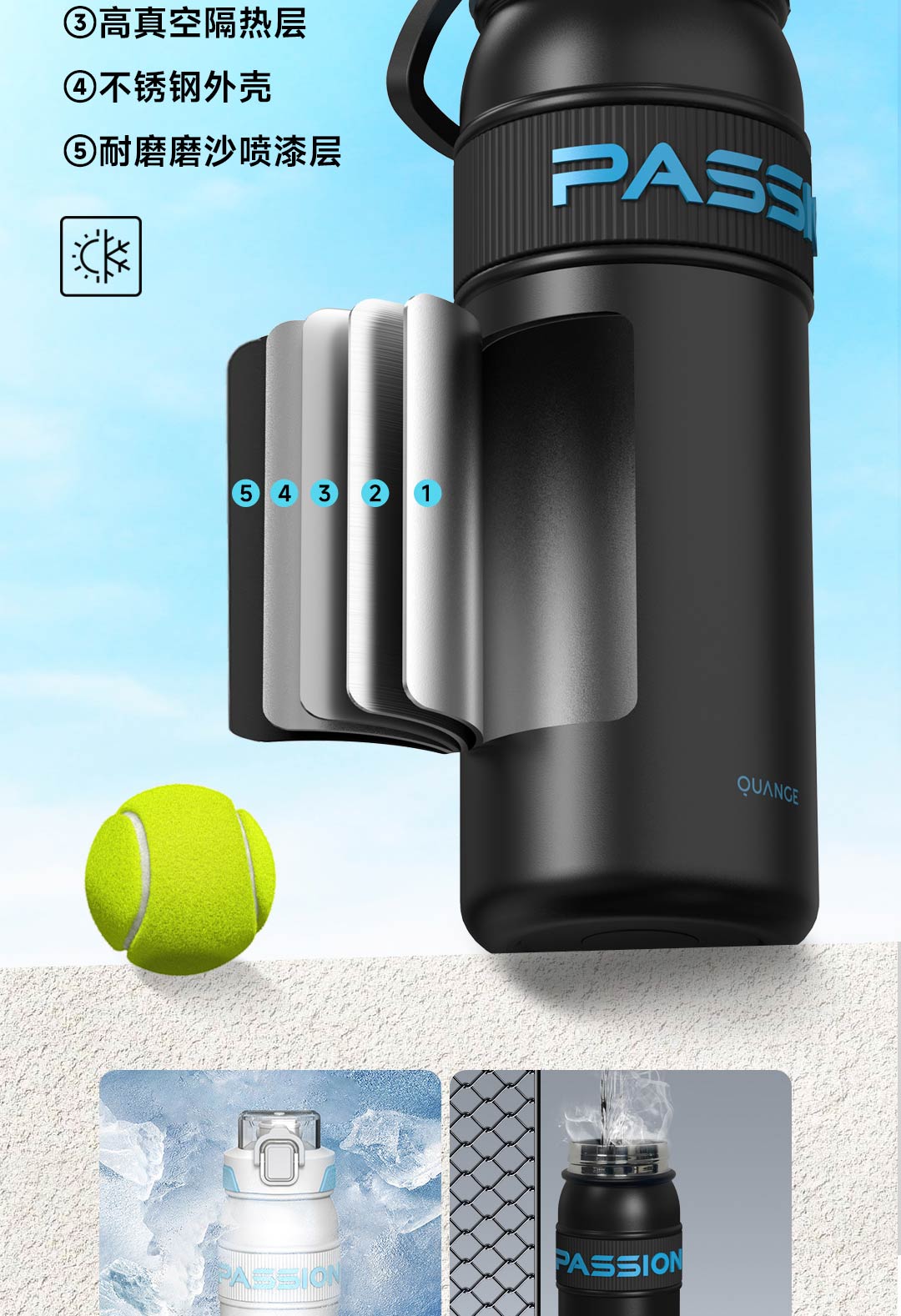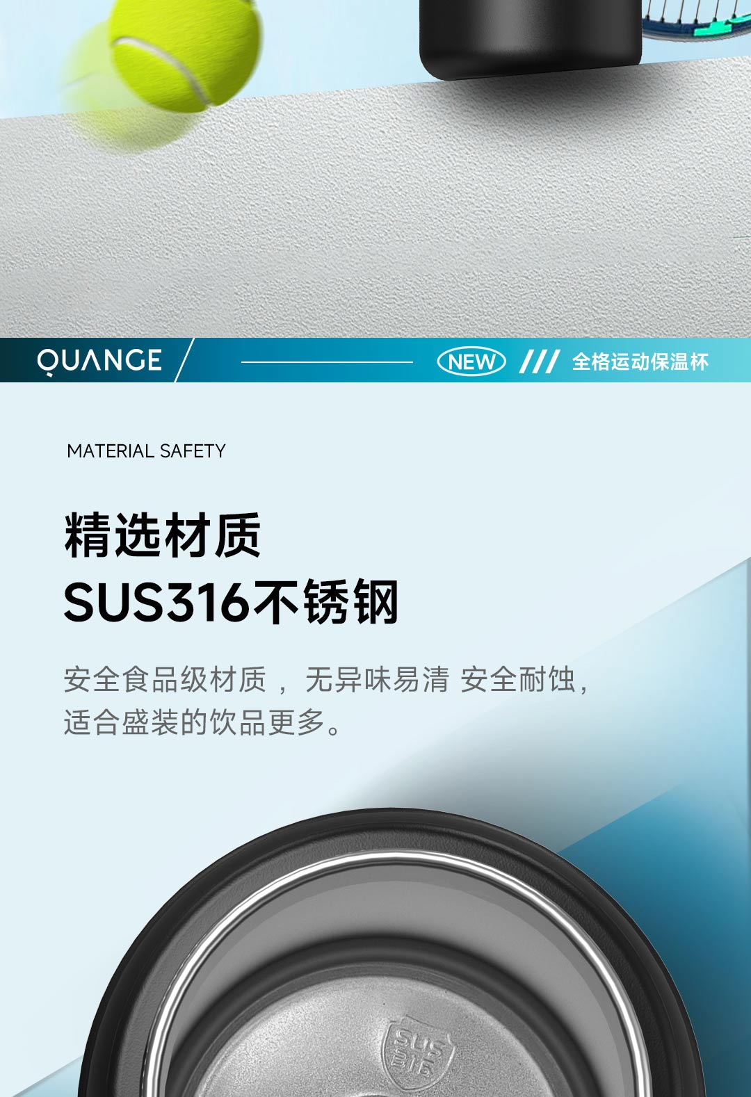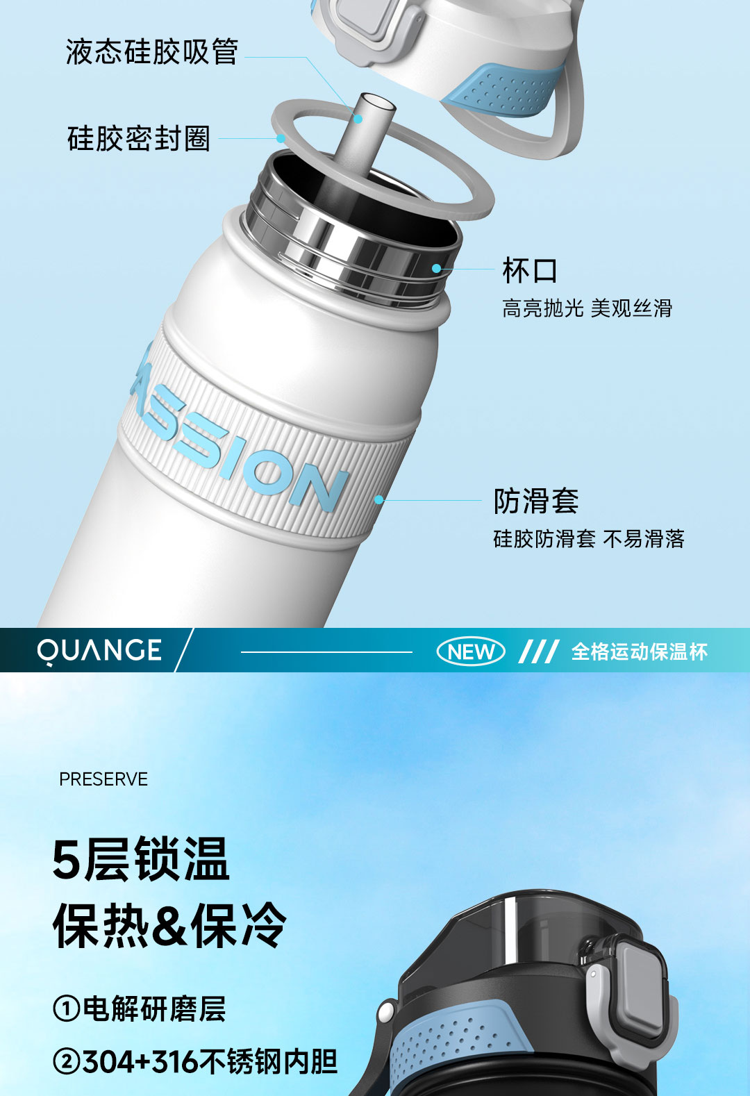 全格(Quange) BW611-820 820ml 弹盖保温杯 白色(单位:个)