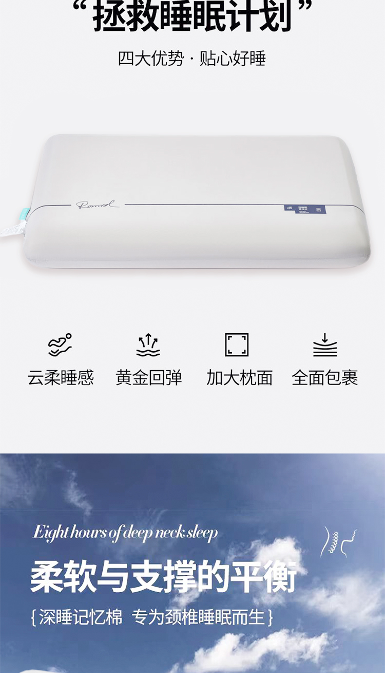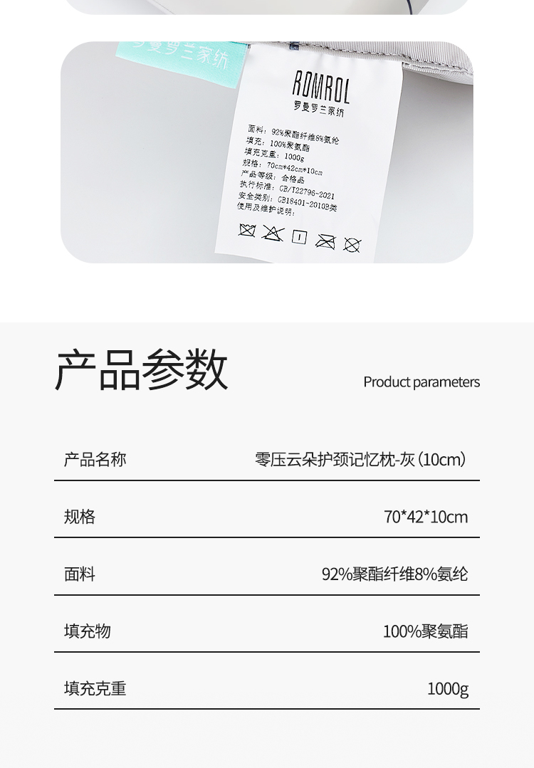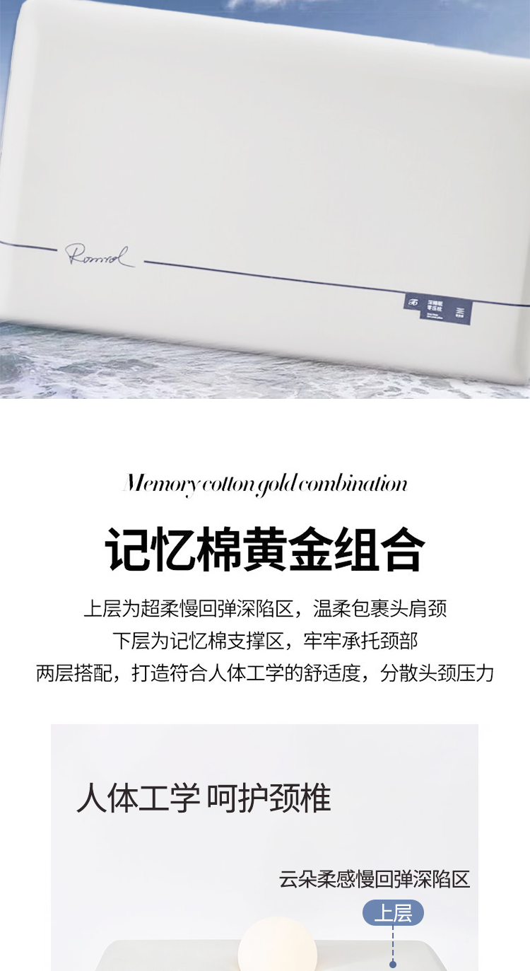 罗曼罗兰(ROMROL) 记忆枕 零压云朵护颈 70*42*10cm 灰色(单位:只)