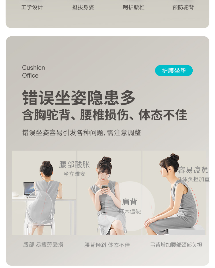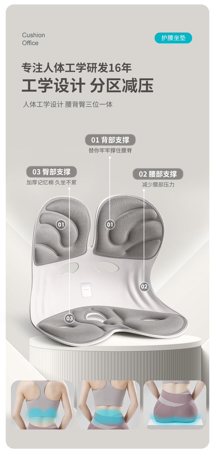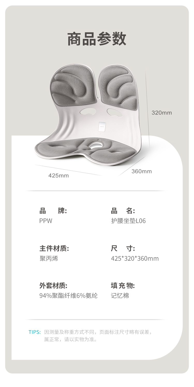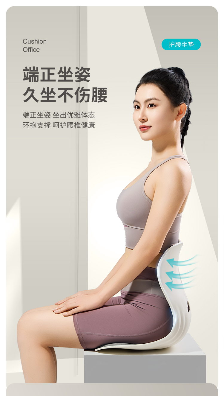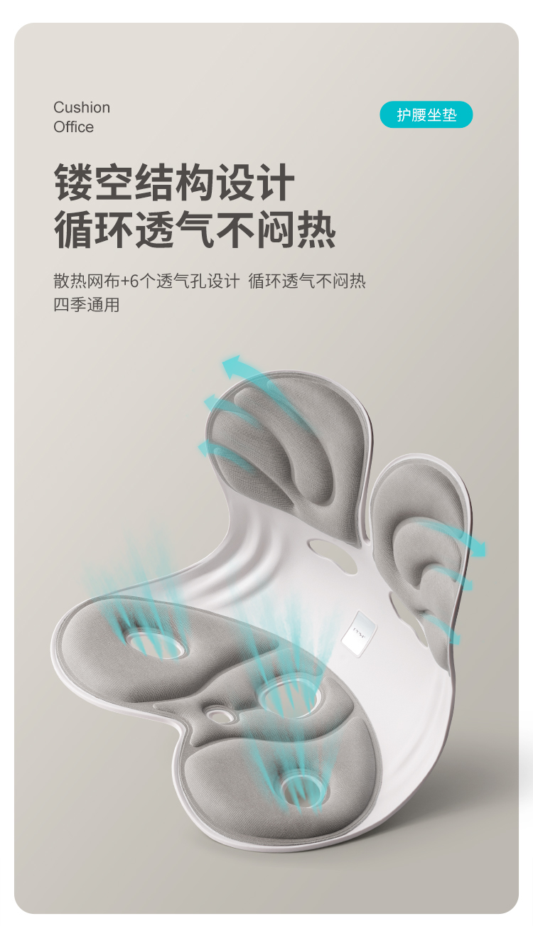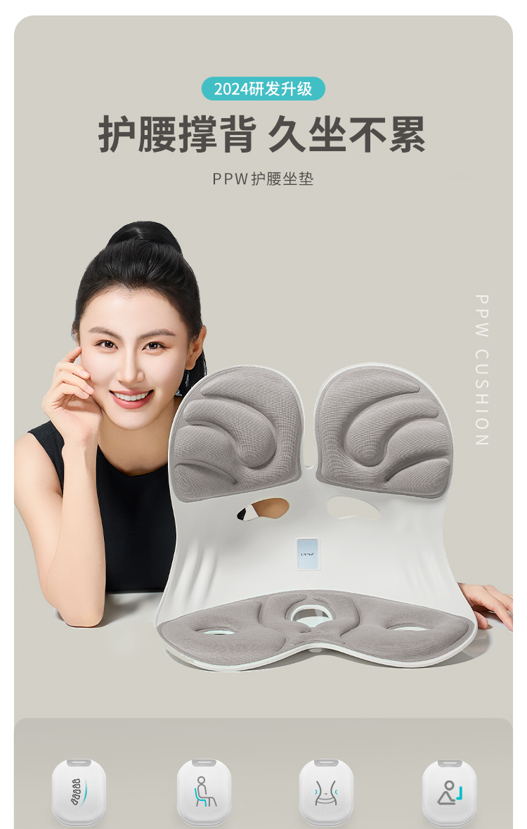 PPW 塑形座椅垫护腰靠垫 护腰坐垫腰靠花瓣坐垫 425*320*360mm 蓝色(单位:个)
