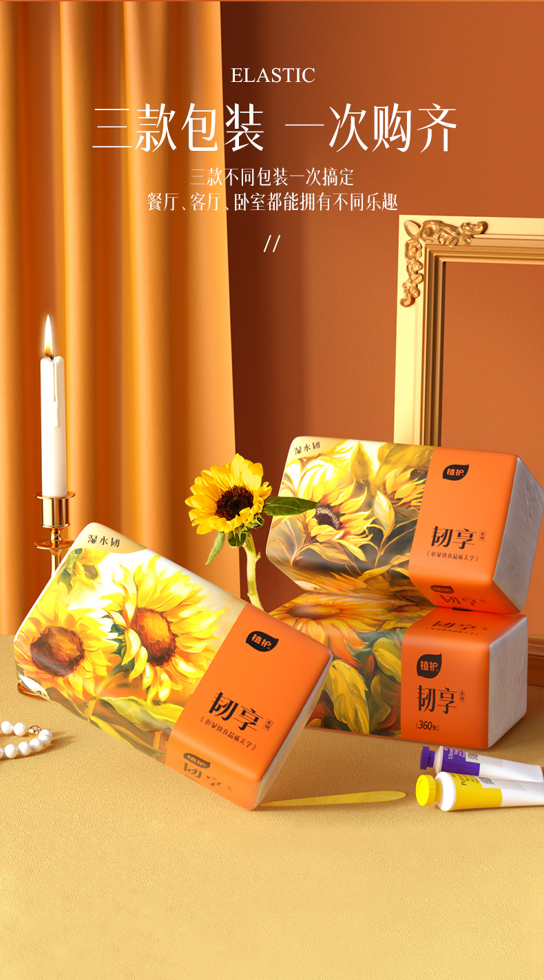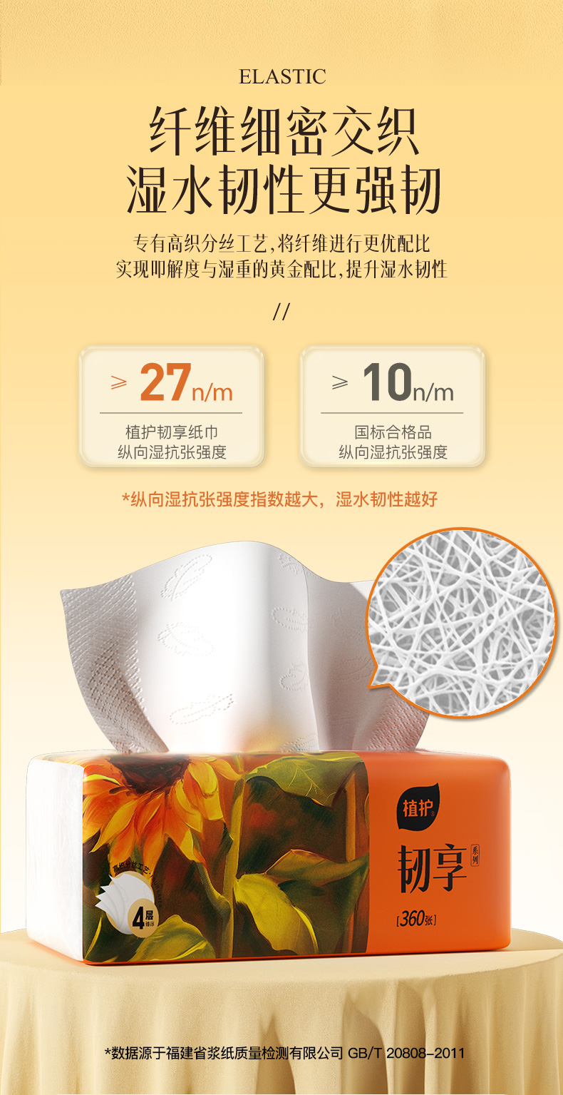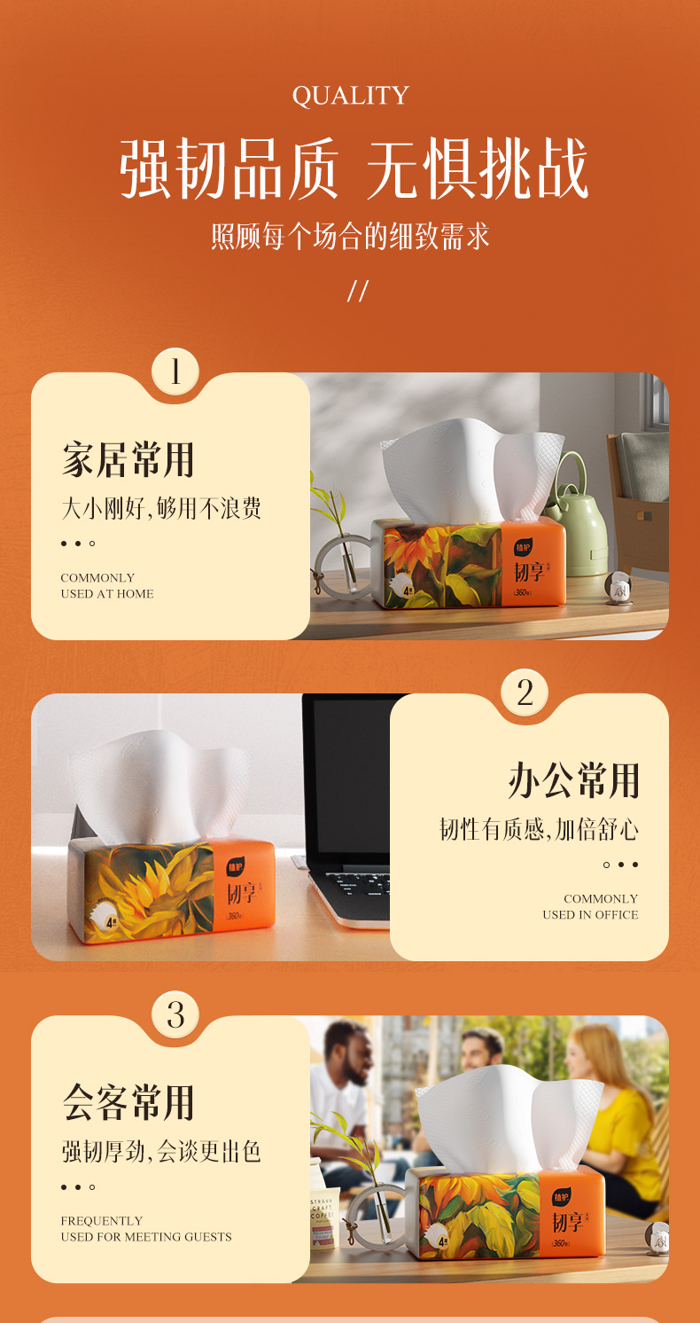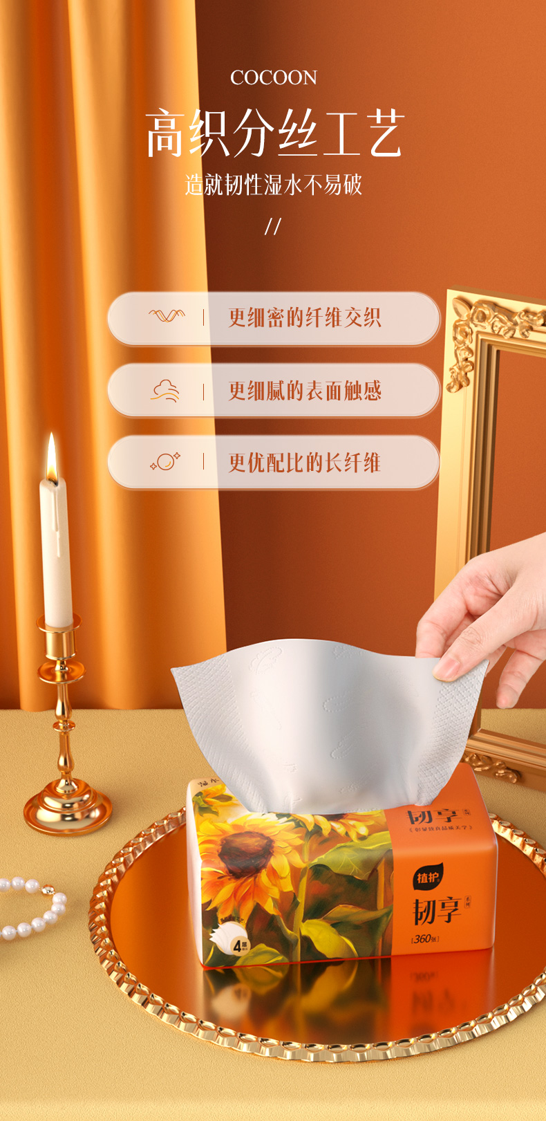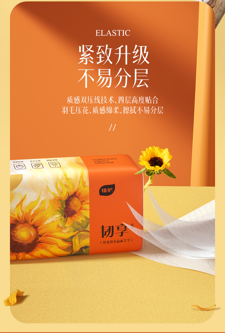 植护 韧享系列 154×180mm/4层 90抽 12包/提 抽取式 抽纸 灰橙色(单位:提)