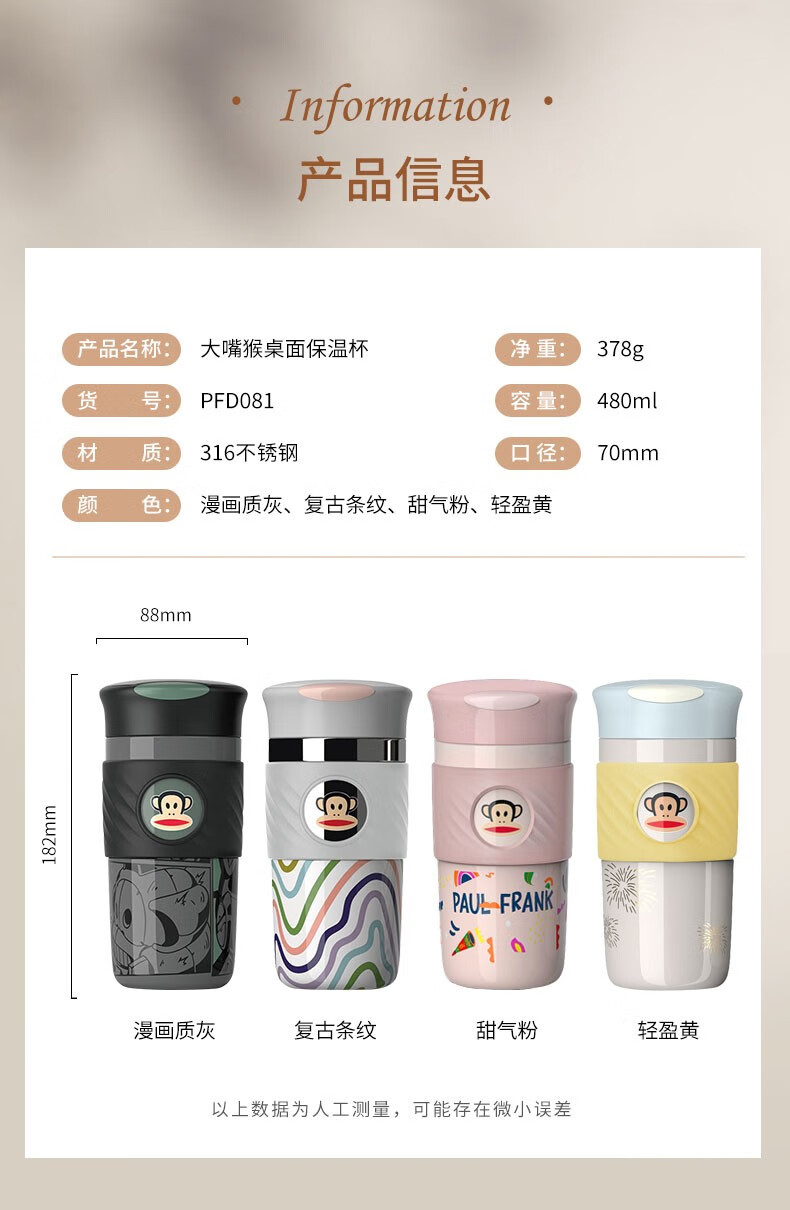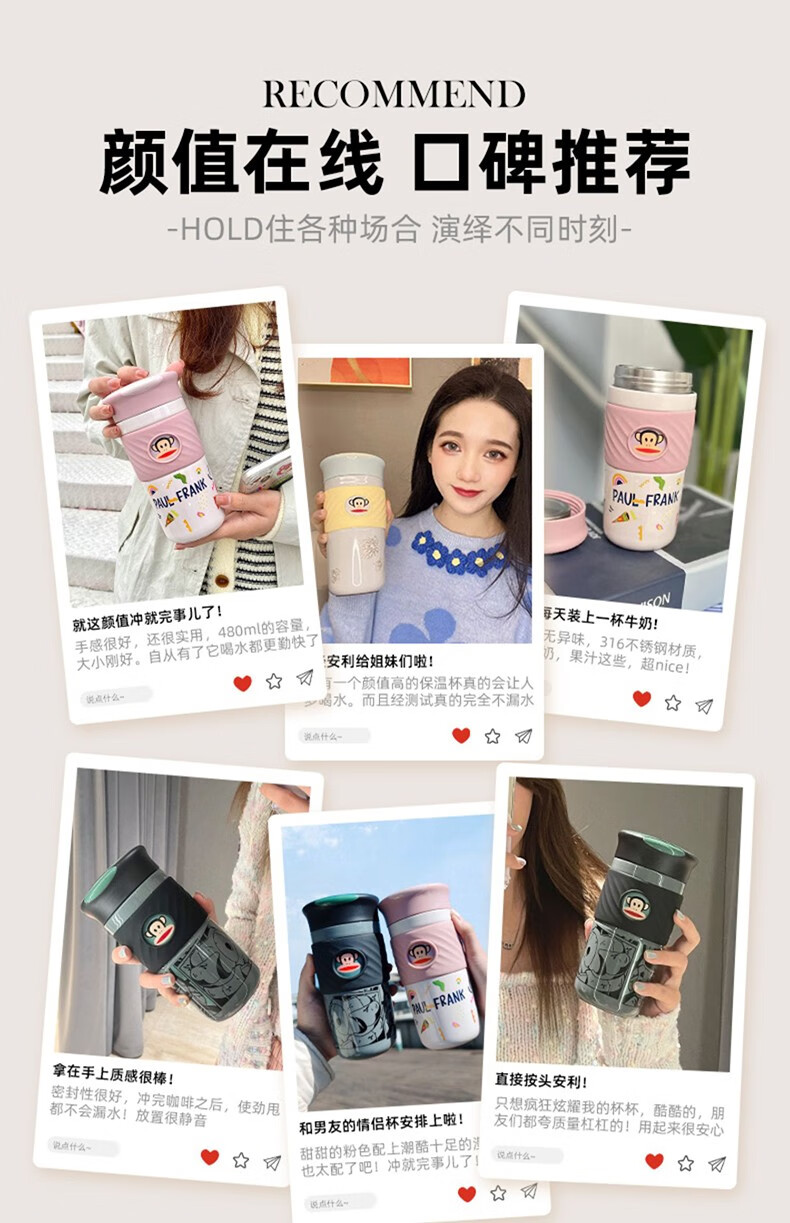 大嘴猴(Paul Frank) PFD081 480ML 保温杯 黑色(单位:个)