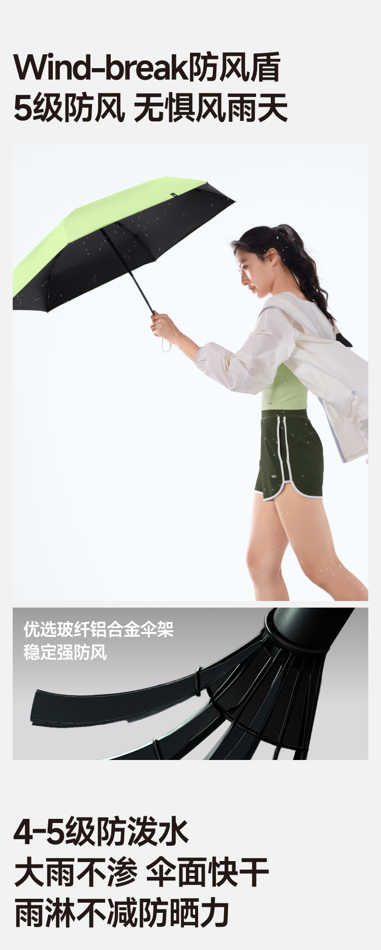 蕉下(beneunder) BM525 UPF50+ 五折黑胶胶囊防晒伞 清潭绿(单位:把)