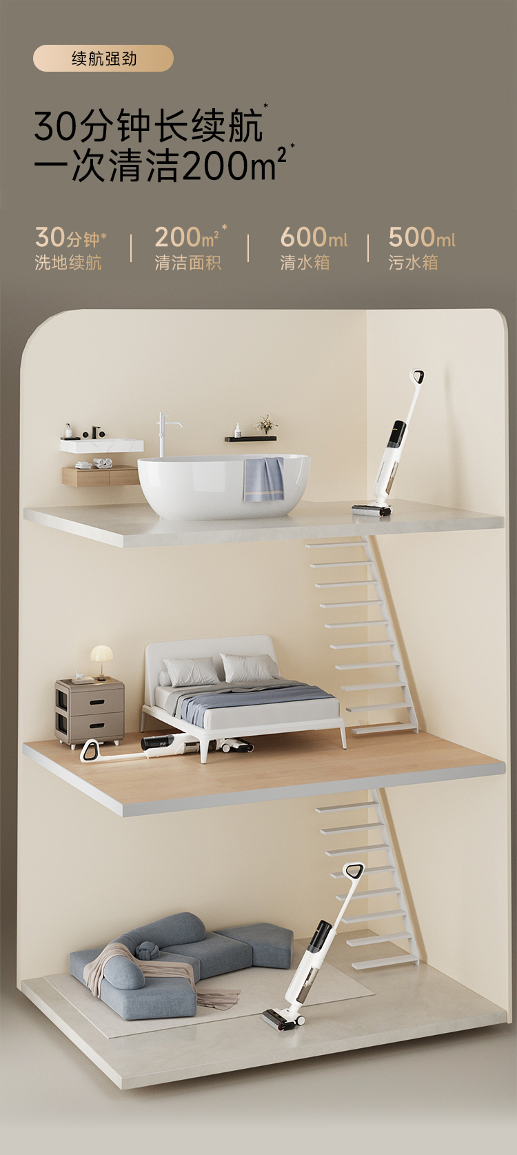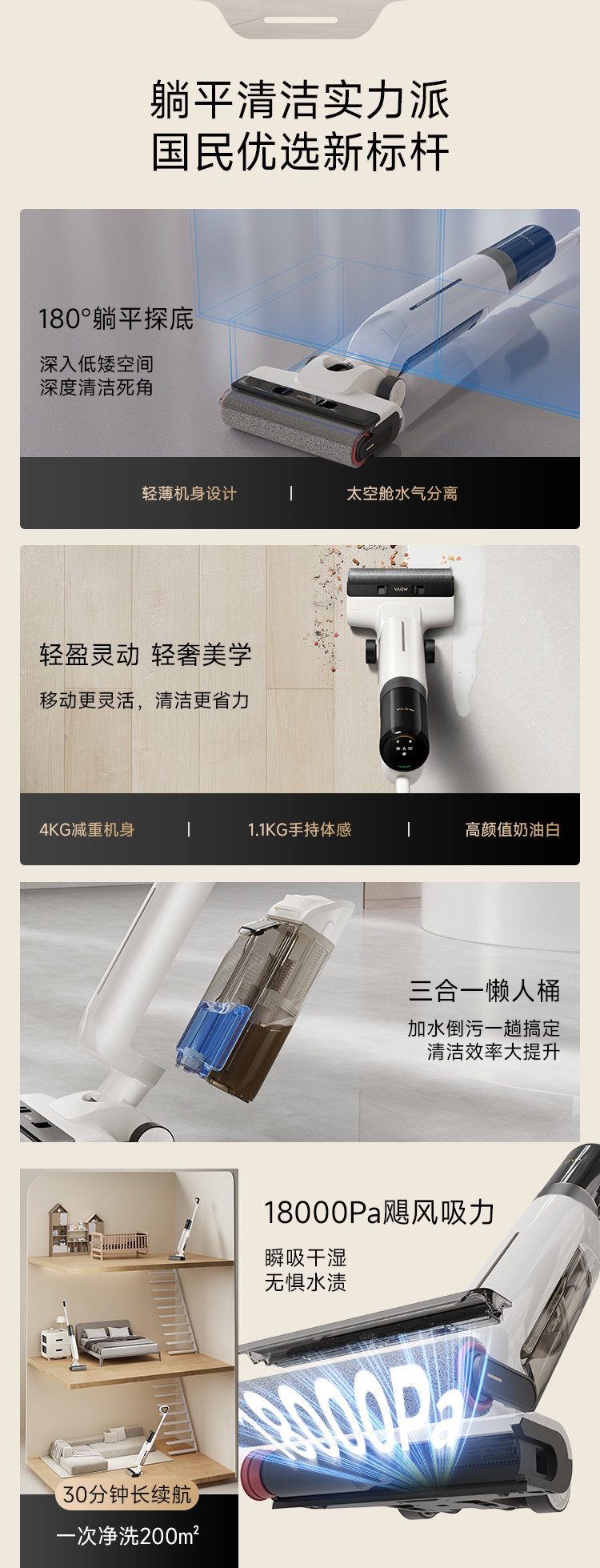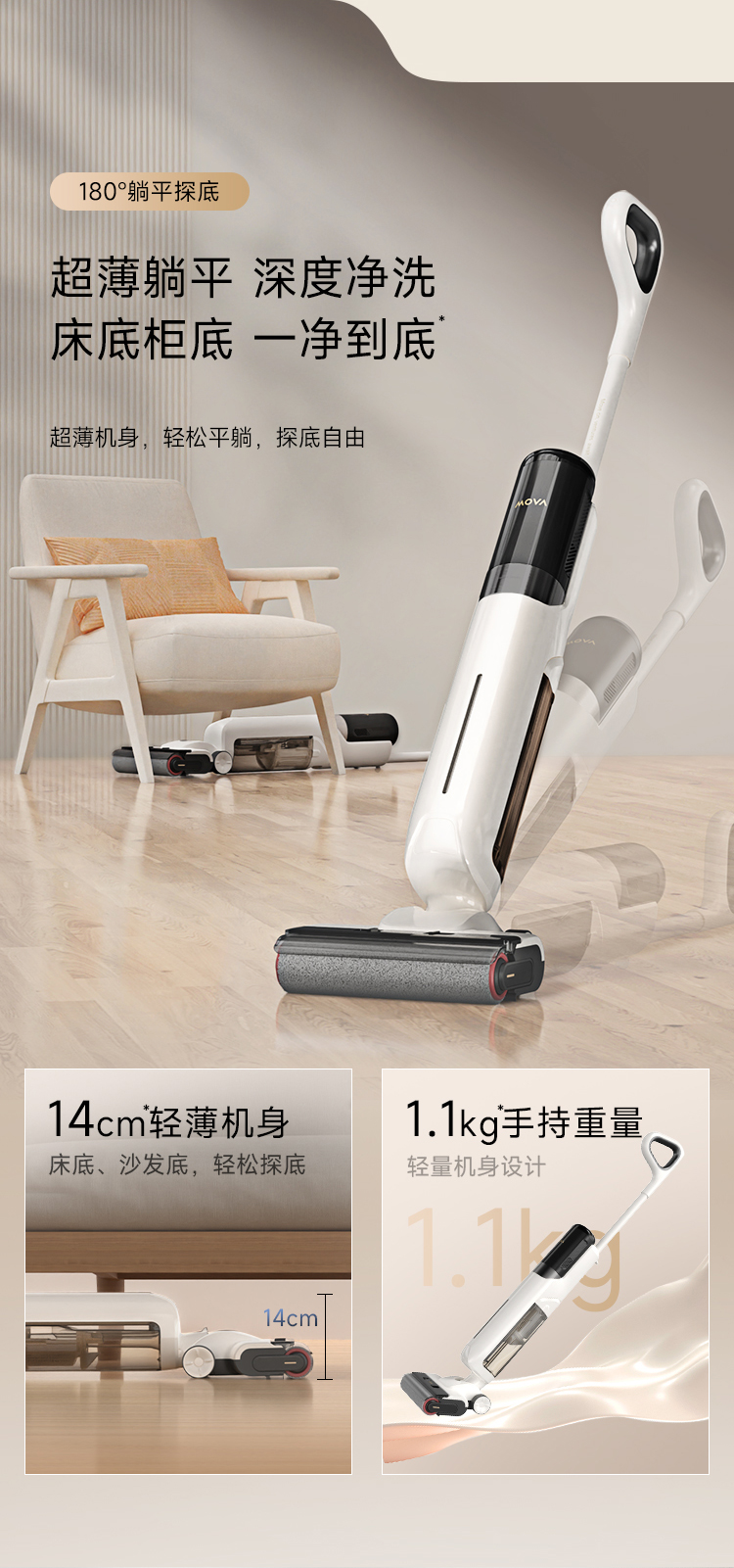 追觅 无线躺平洗地机 MOVA 4.0Pro 整机功率:250W 白色(单位:台)