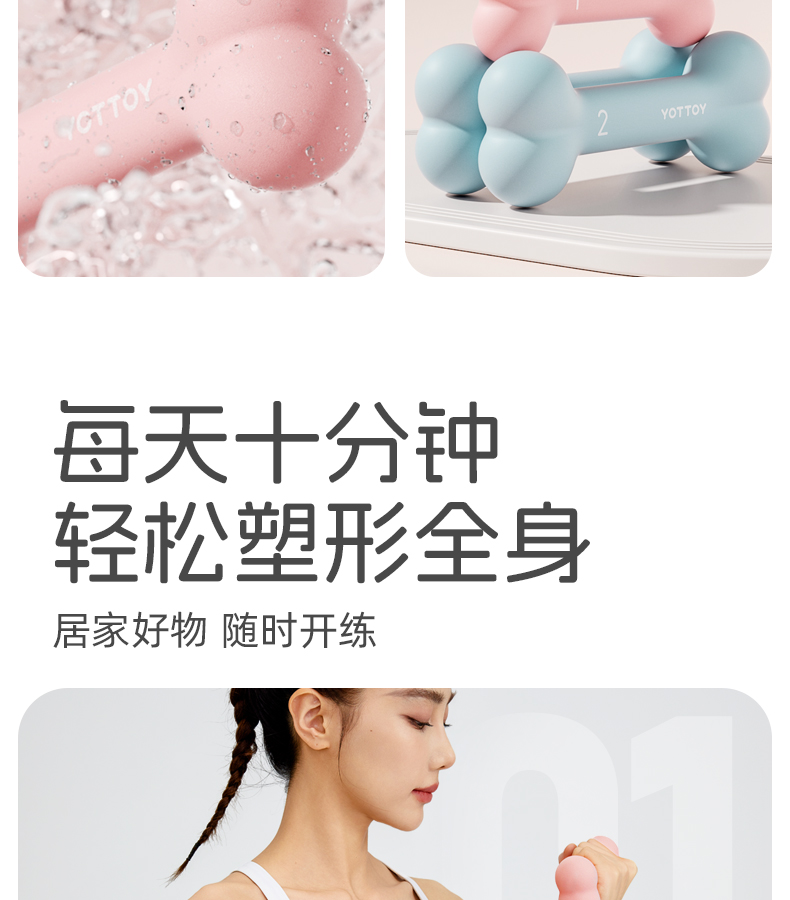 YOTTOY 小骨哑铃2*2kg ylhl2405x1A00021585a002 21*8.5*5cm 柔雾粉(单位:对)