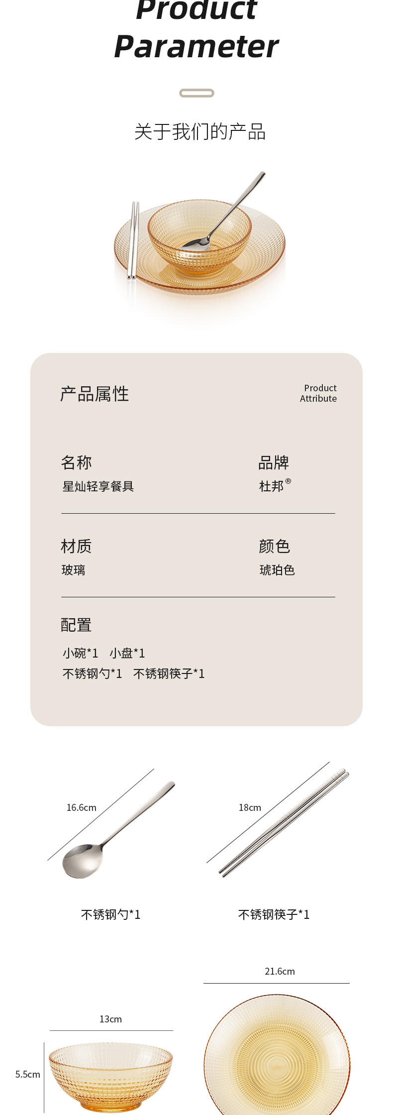 杜邦(DUPONT) PCJ-604 4件套 星灿餐具套组 琥珀色(单位:套)