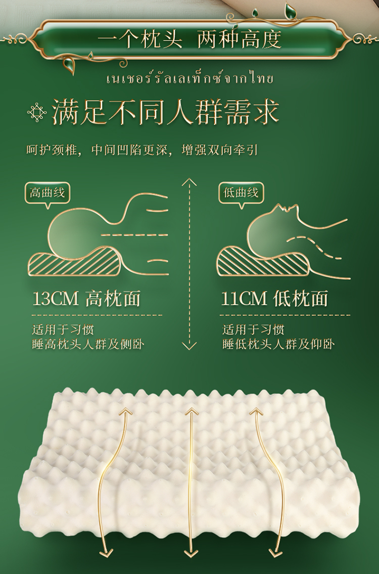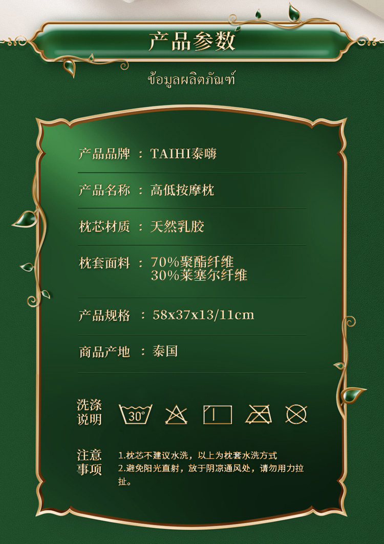 泰嗨 高低按摩乳胶枕 TPA01-06 (高款)长58cm*宽37cm*高11/13cm 白色 白色(单位:个)