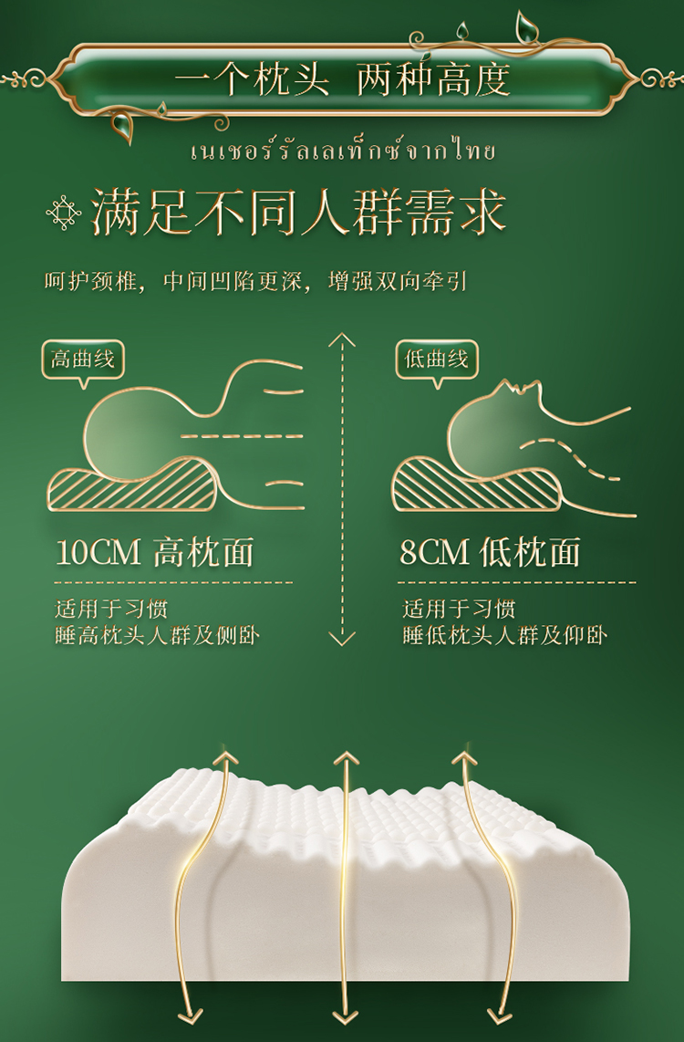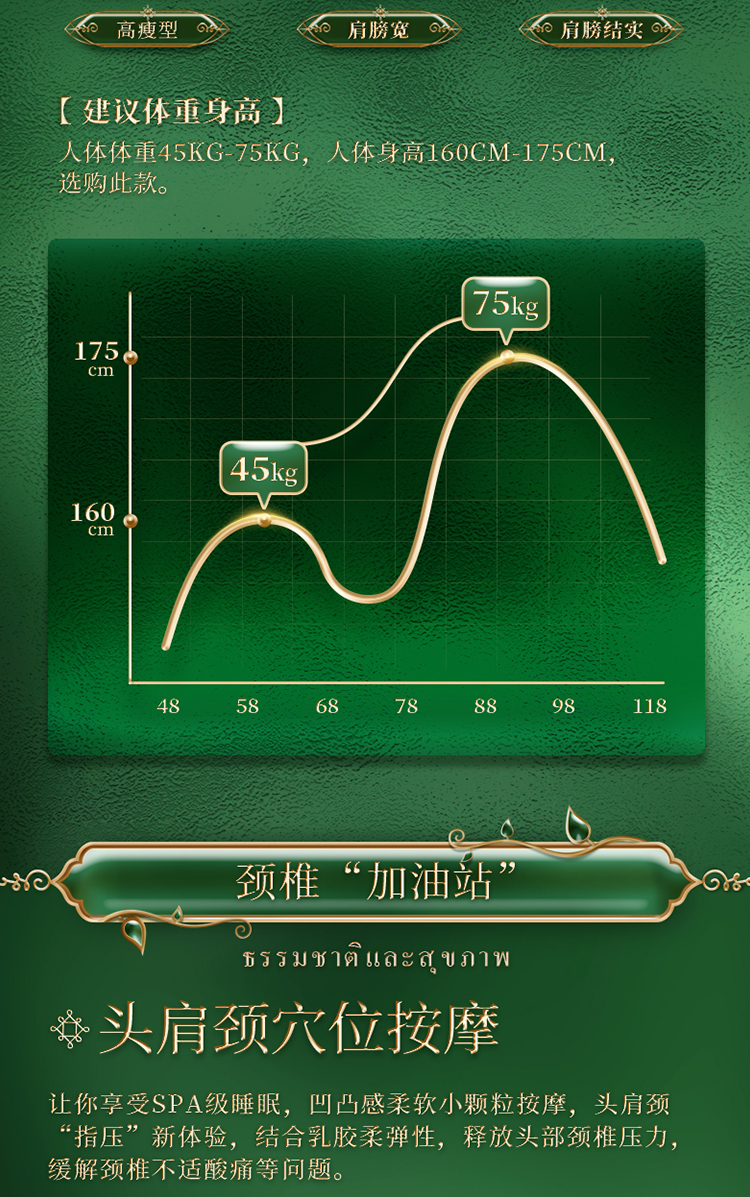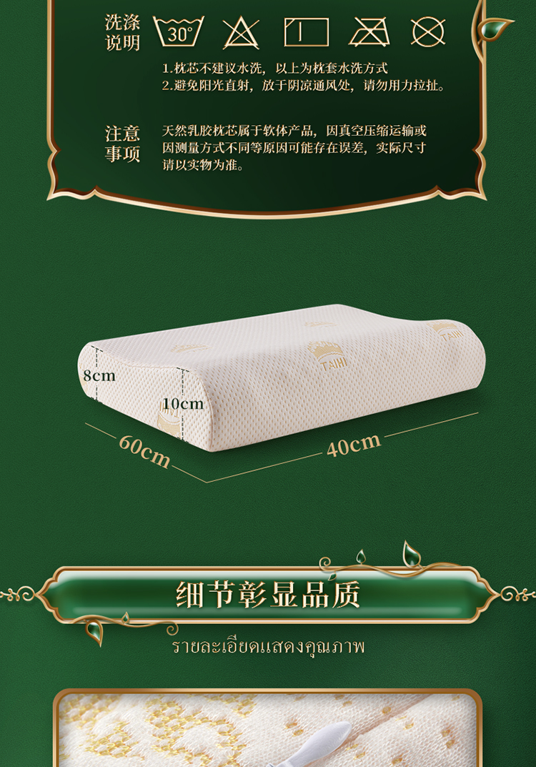 泰嗨 颗粒按摩乳胶护颈枕 TPXO3-01 (标准款)长60cm*宽40cm*高8/10cm 白色(单位:个)