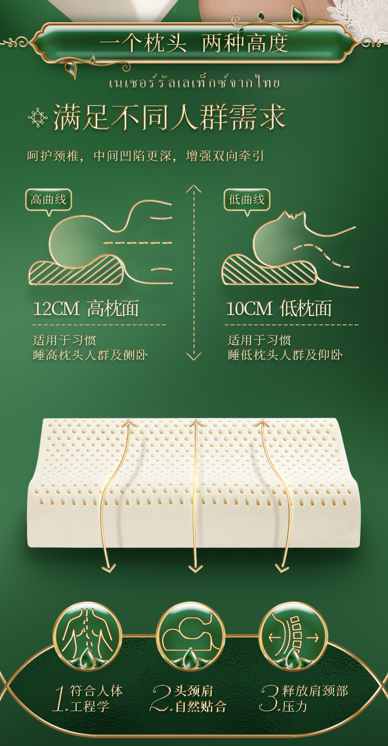 泰嗨 特拉雷波浪乳胶护颈枕 TPX11 长60cm*宽40cm*高10/12cm 白色(单位:个)