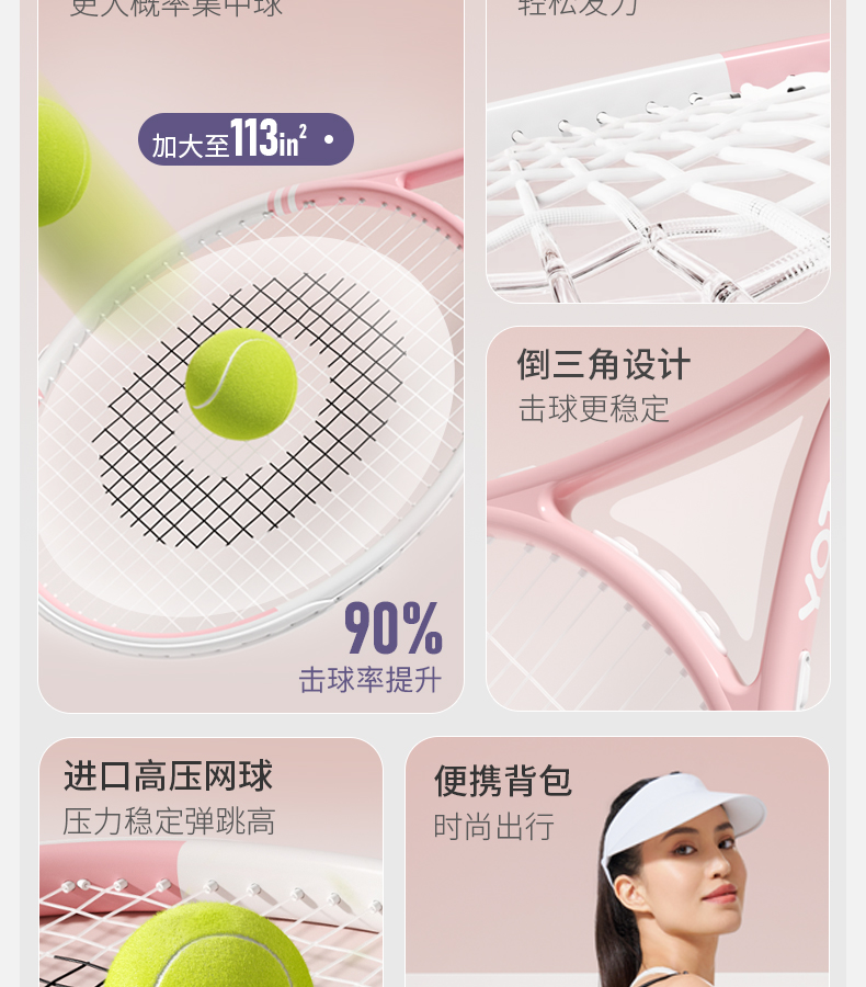 YOTTOY 单人标准款网球套装 qtwq2312x1A00027069a009 325g*1 YOT粉(单位:套)