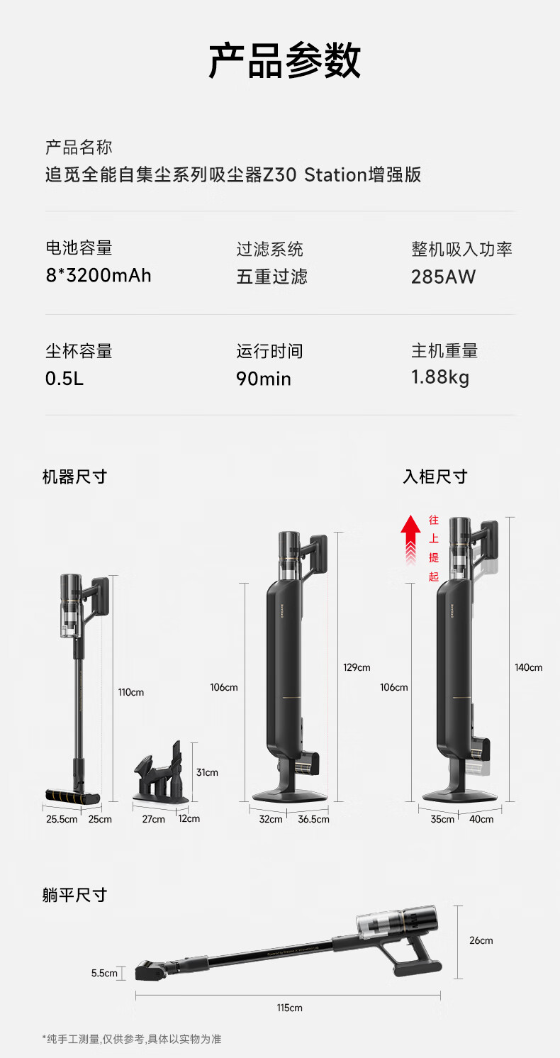 追觅 Z30 Station增强版 0.5L尘杯+3L尘袋 吸尘器 黑色(单位:台)