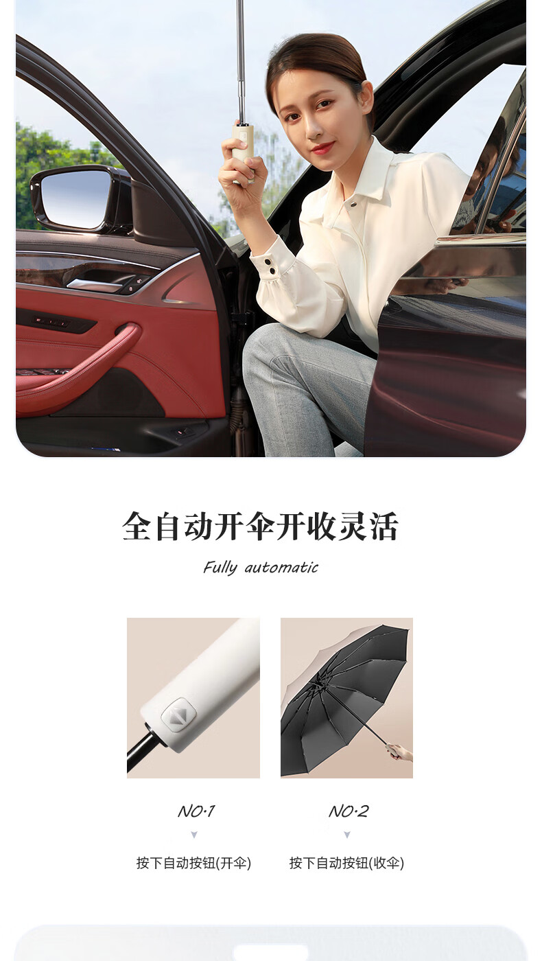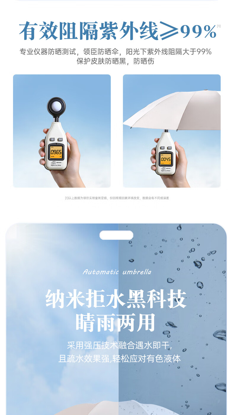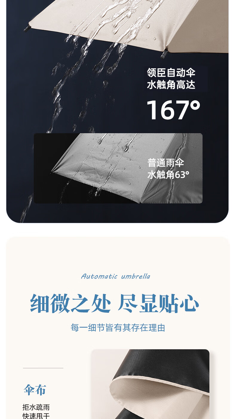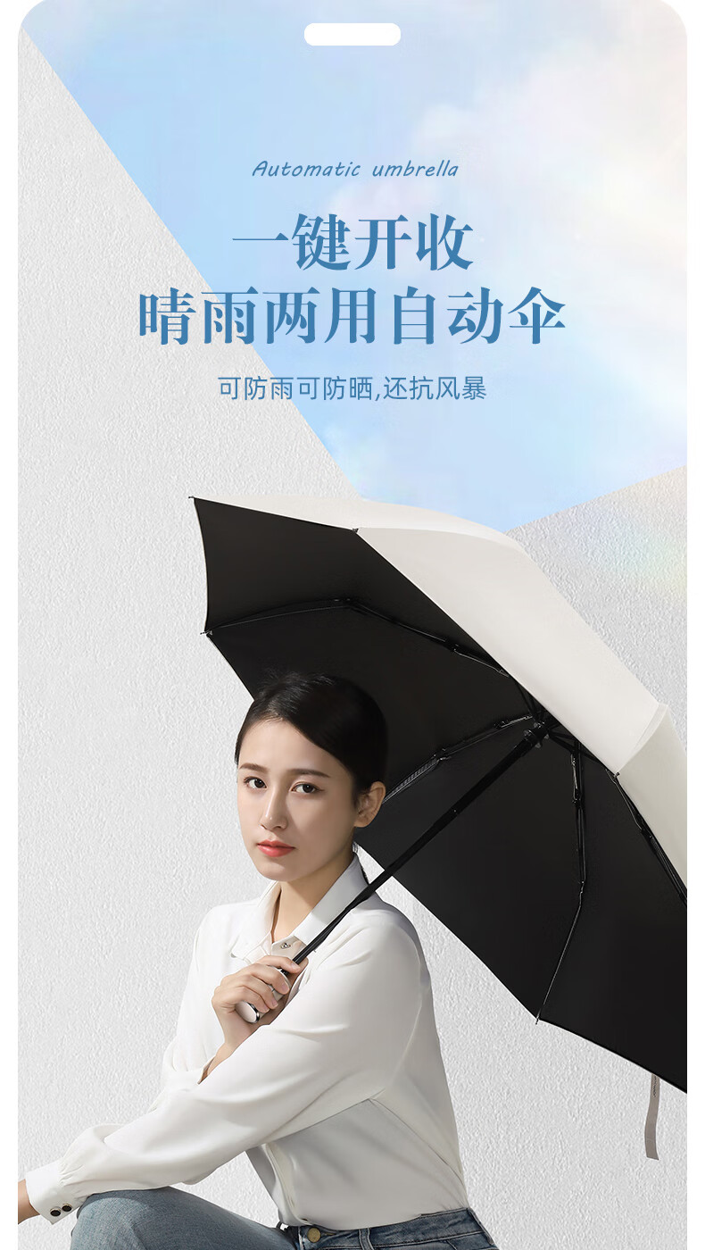 licheers 领臣 双龙骨自动晴雨伞 LC-571 三折 白色(单位:把)