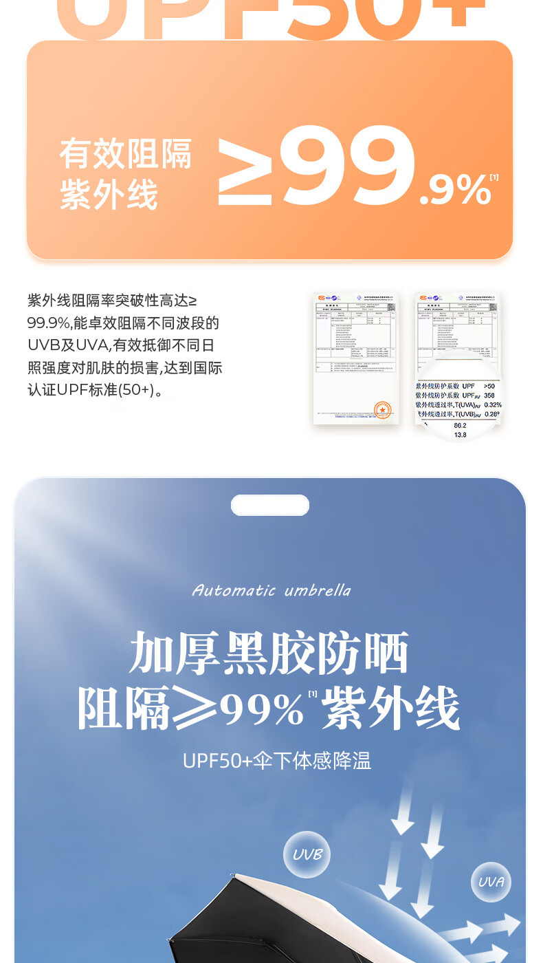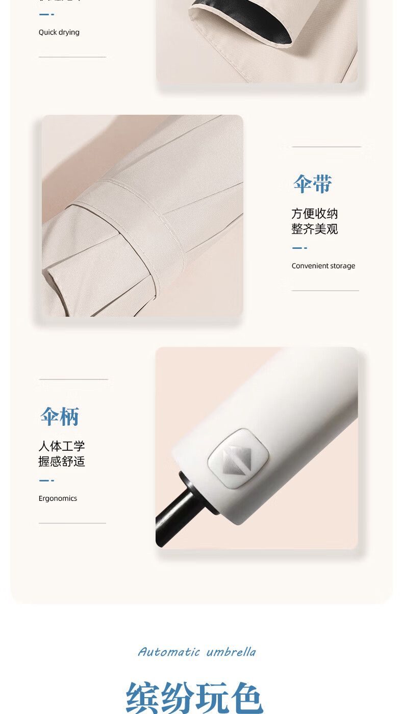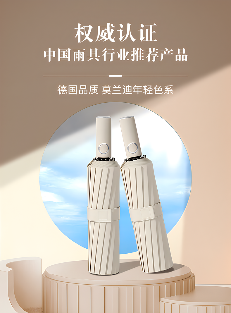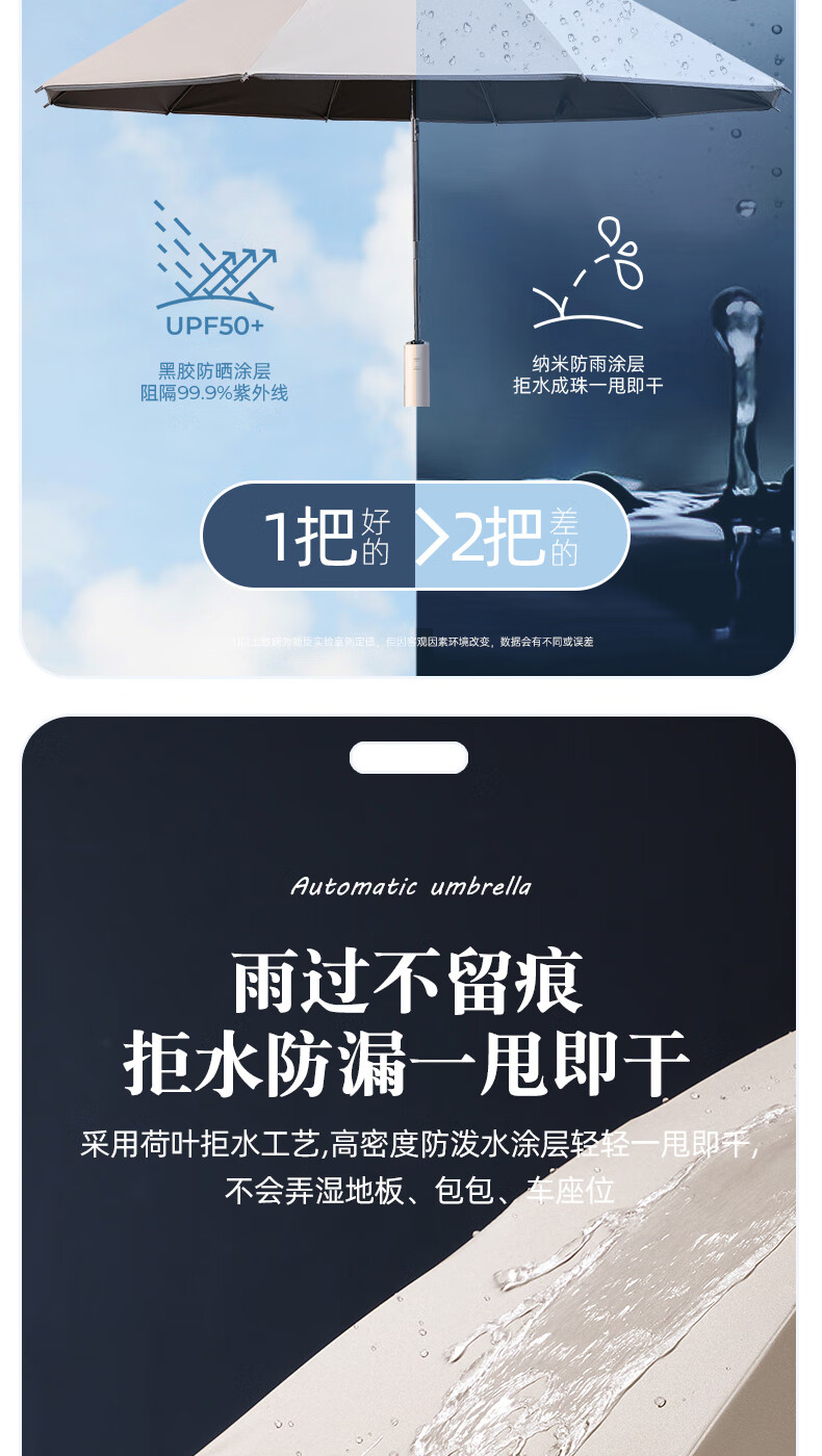 licheers 领臣 双龙骨自动晴雨伞 LC-571 三折 白色(单位:把)