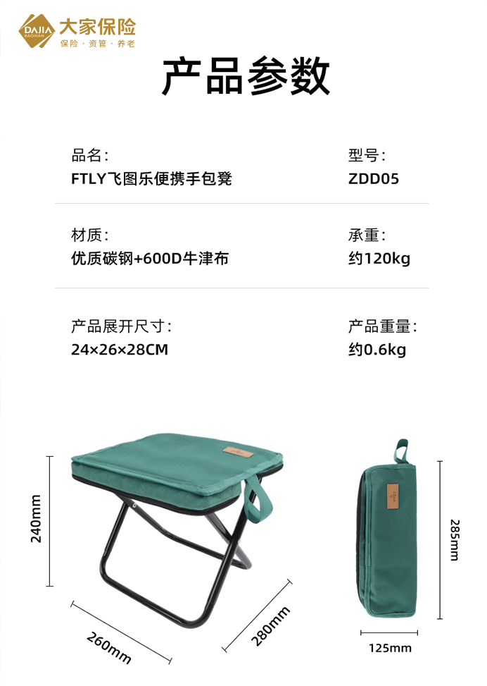 飞图乐(FTLY) 便携手包凳 ZDD05 0.6kg 苍松绿(单位:个)