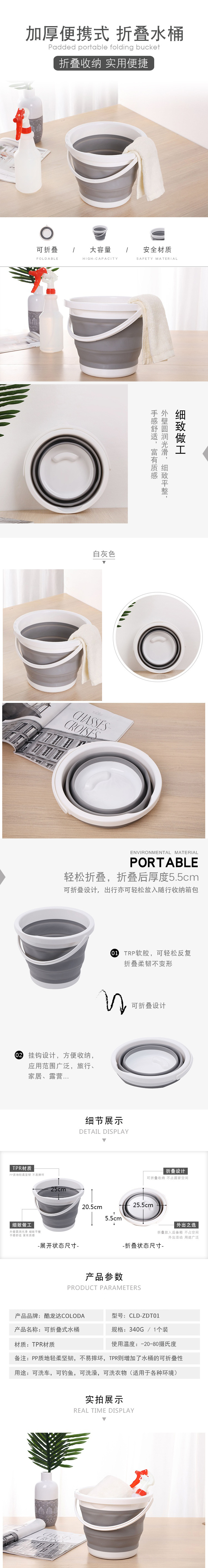 酷龙达(Coloda) 户外露营便携式折叠水桶 CLD-ZDT01 25*20.5cm 灰色(单位:个)