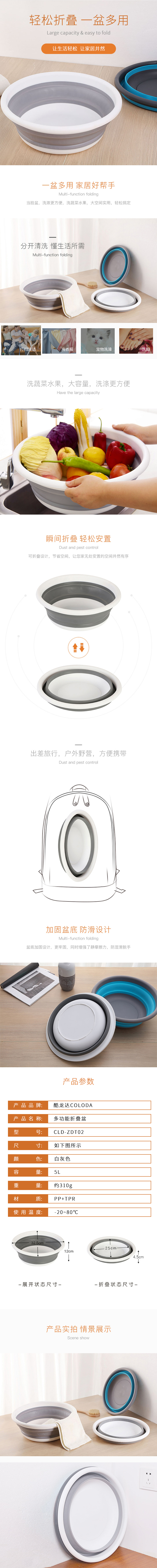 酷龙达(Coloda) 便携式折叠水盆 CLD-ZTD02 32.5*12cm 白灰色(单位:个)