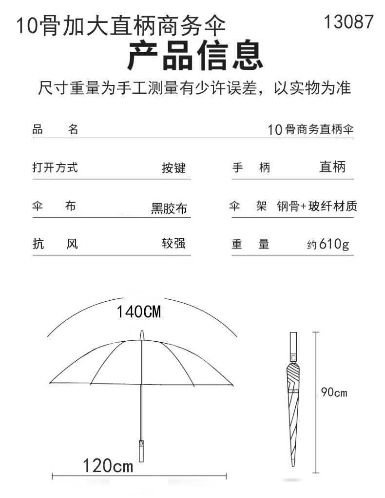 天堂 现代风尚直杆双人伞 13087E 70cmX10g骨 藏青色(单位:把)