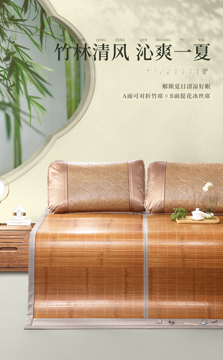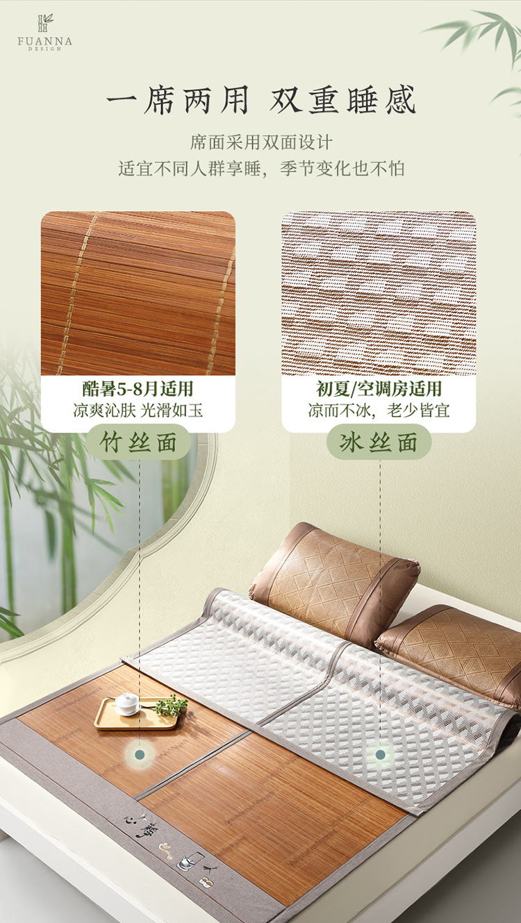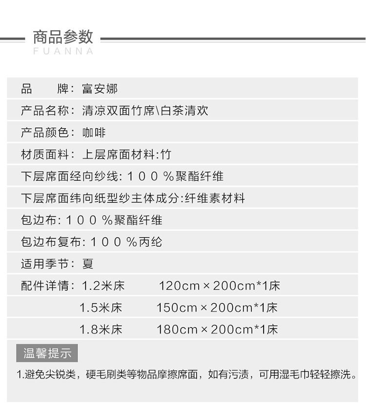 富安娜 清凉双面竹席【可折叠 双面可用】 白茶清欢 9111006193015 180*200cm 咖啡色(单位:床)