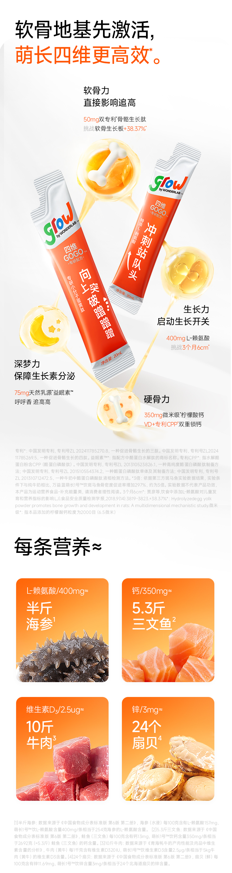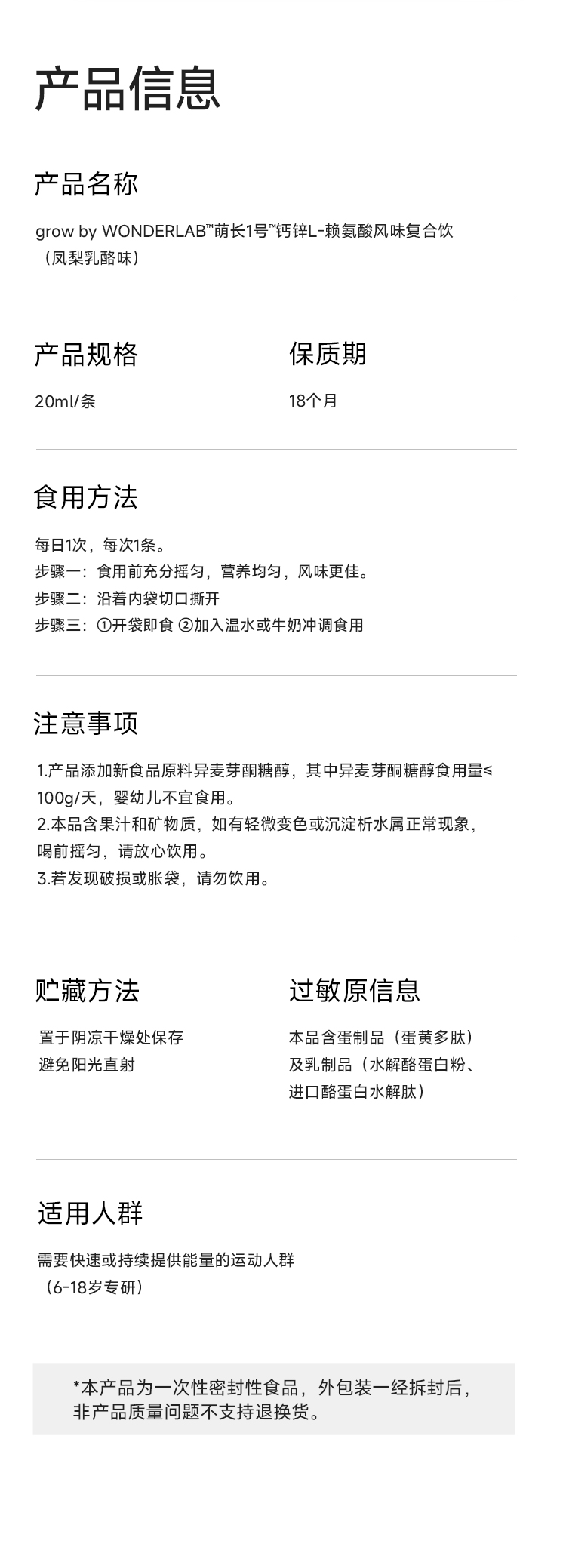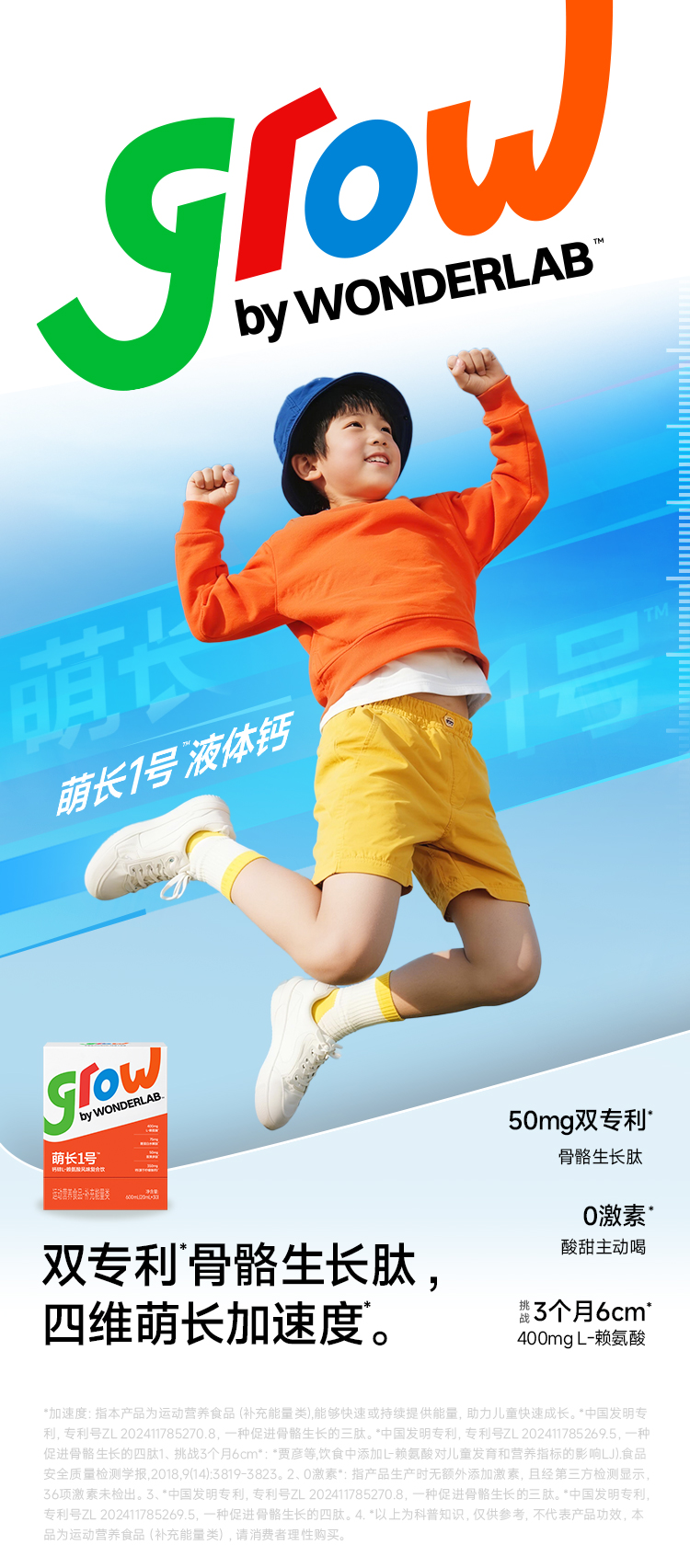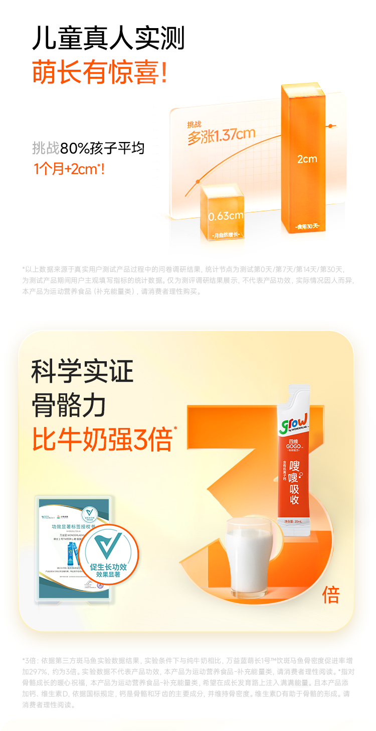 WonderLab 萌长1号钙锌L-赖氨酸风味复合饮 儿童液体钙 20ml*30条/盒 水蓝色(单位:盒)