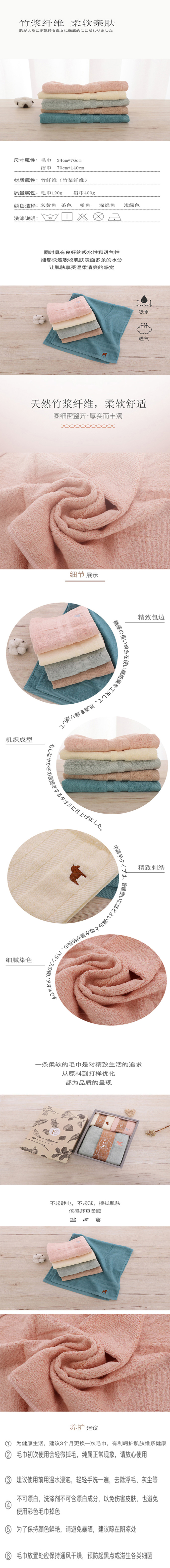 优竹世家 布莱迪-5 1浴巾2毛巾 竹纤维毛浴巾组合套装 套 粉色,绿色,蓝色,咖色,白色