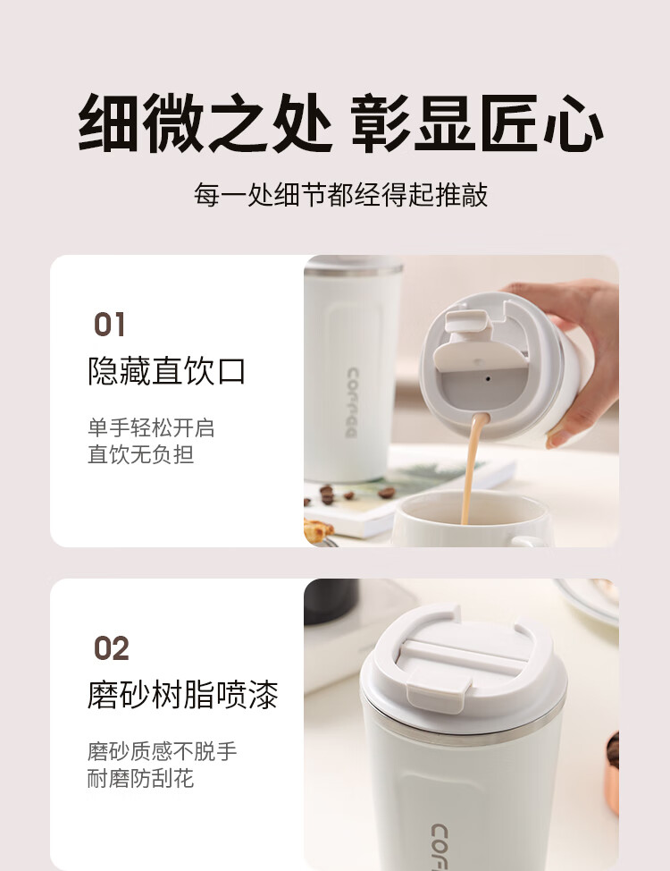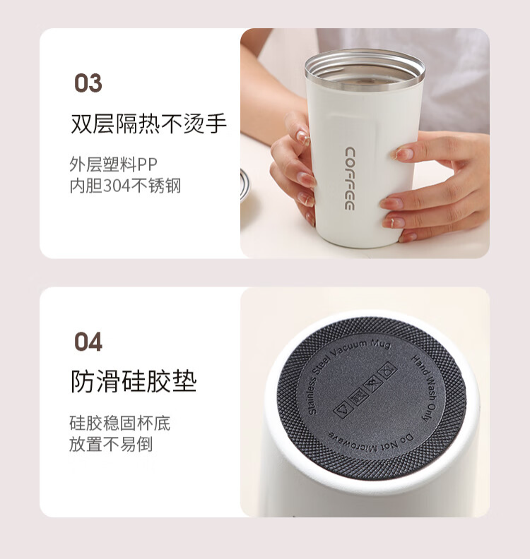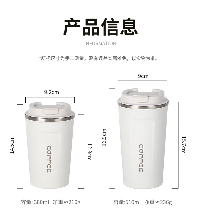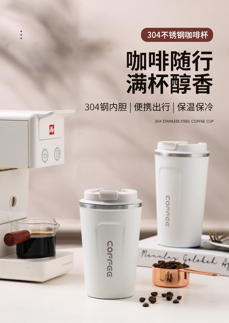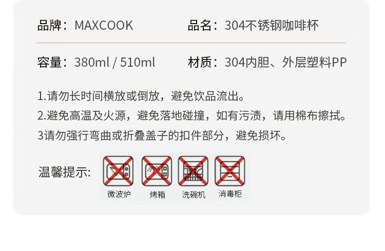 美厨(maxcook) 304不锈钢咖啡杯 MCB8749 大号510ML 白色(单位:个)
