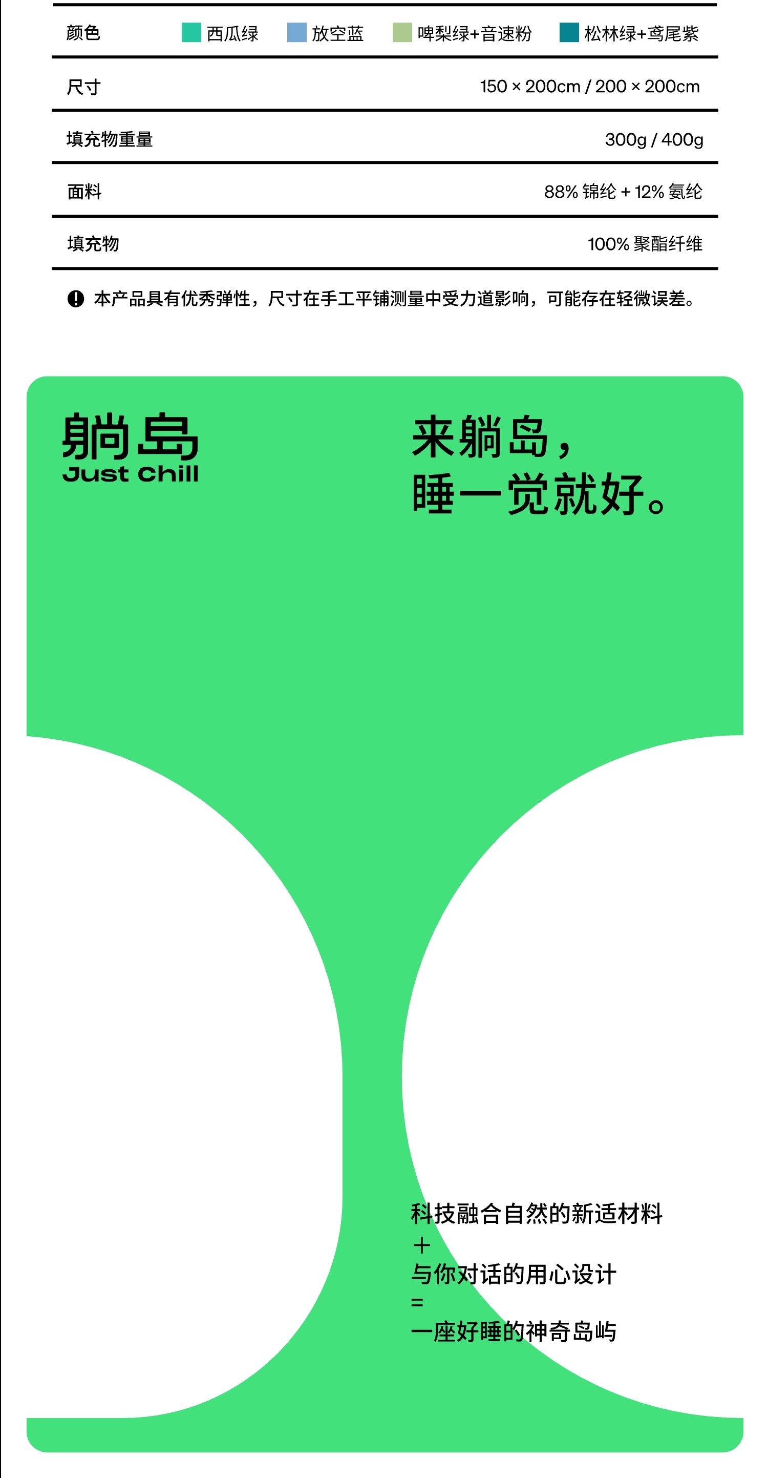 躺岛 瓜瓜凉系列 · 经典瓜 即刻凉感夏被 - 瓜瓜纤维版 夏季品系列 200*200cm 晴空蓝+青瓷绿(单位:床)