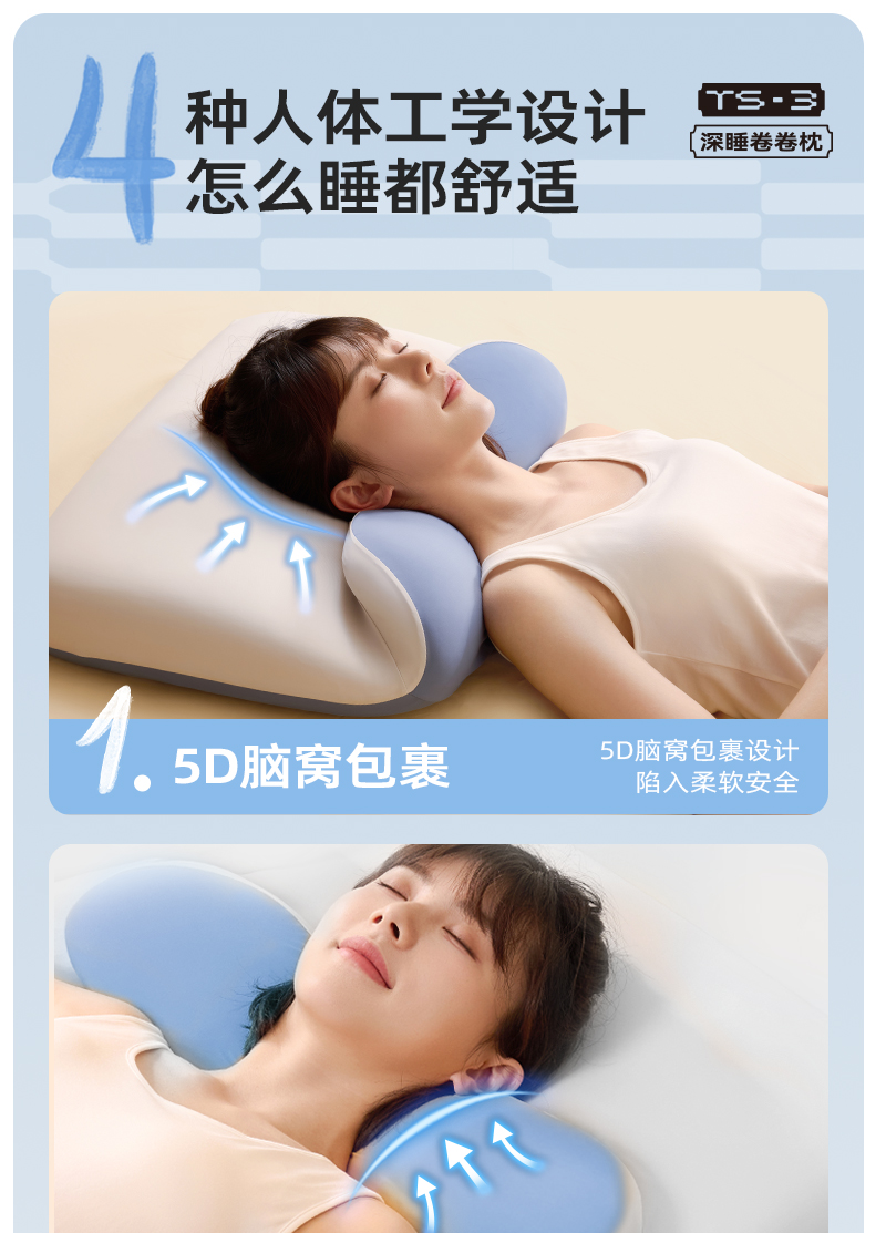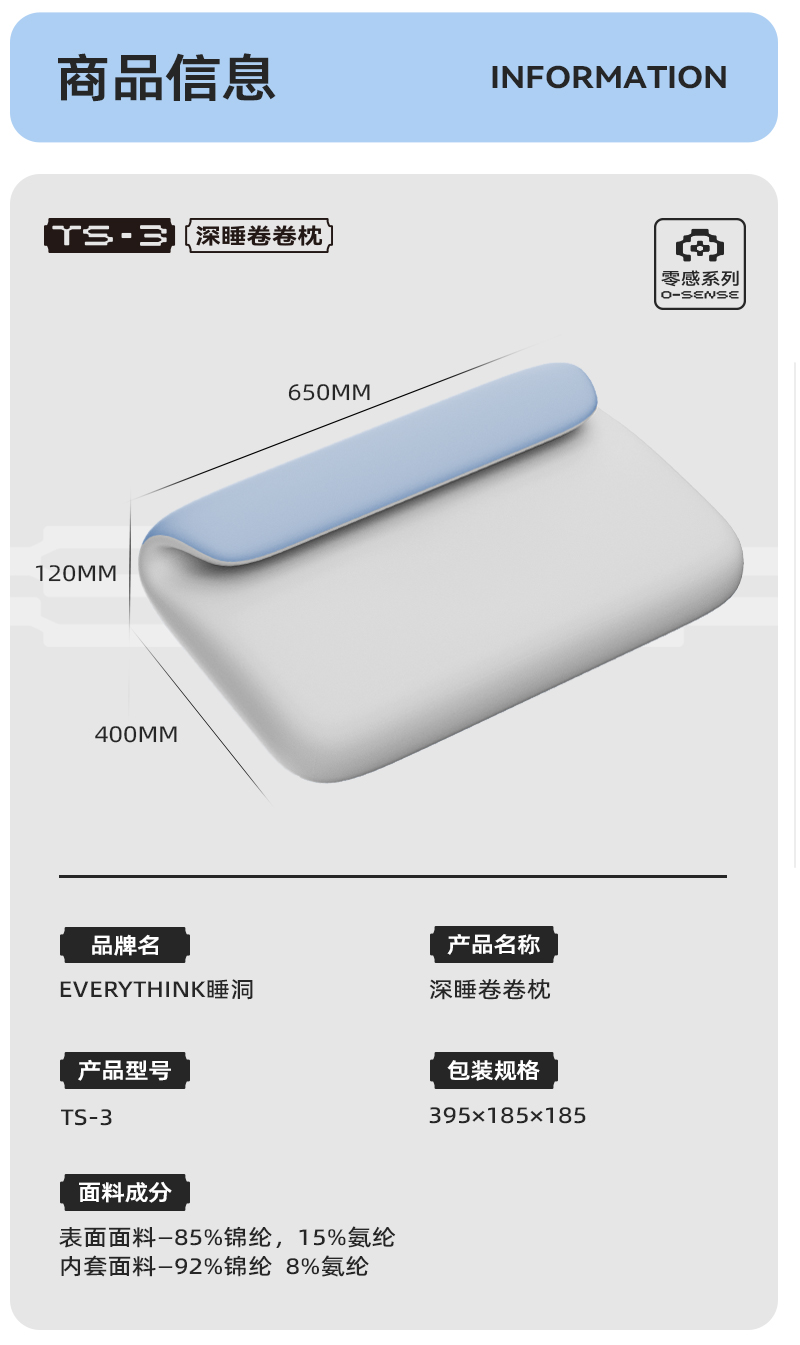 脑洞氛子(EVERYTHINK) 深睡卷卷枕头 TS3 395X185X185mm 灰蓝色(单位:个)
