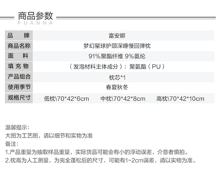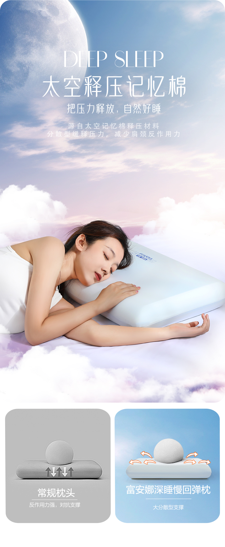 富安娜 梦幻星球护颈深睡慢回弹枕\中枕 813001327 70*42*8cm 蓝色(单位:个)