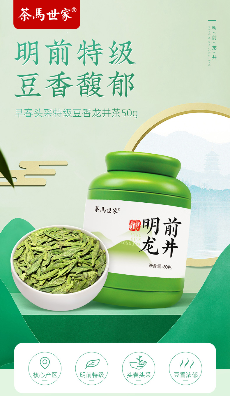 茶马世家 早春头采特级龙井茶罐装 LG050MHT 50g 雾雨绿(单位:罐)
