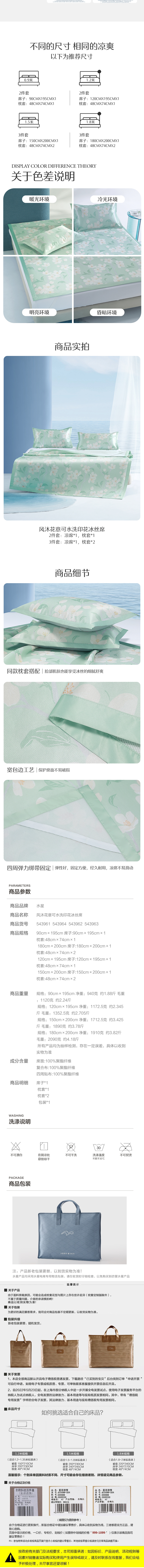 水星家纺 A类可水洗印花冰丝席 543964 180cm×200cm 1.8米床 松石绿(单位:套)