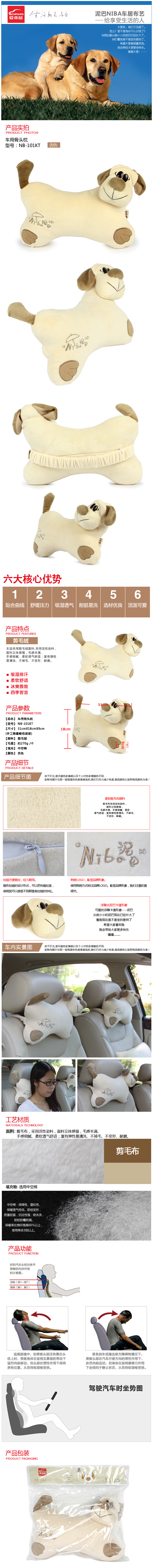 爱车屋icaroom爱车屋车用骨头枕1个入NB-101KT/个 奶茶杏