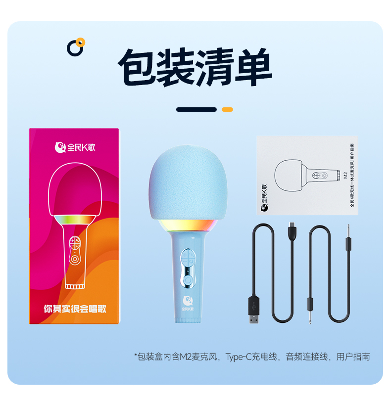 全民K歌 音响一体式麦克风 M2 1200mAh 蓝色(单位:个)
