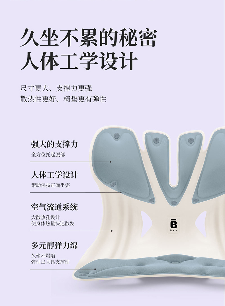 BKT 人体工学护腰坐姿椅 超大版 适合体重:体重150-300斤 海雾蓝(单位:个)