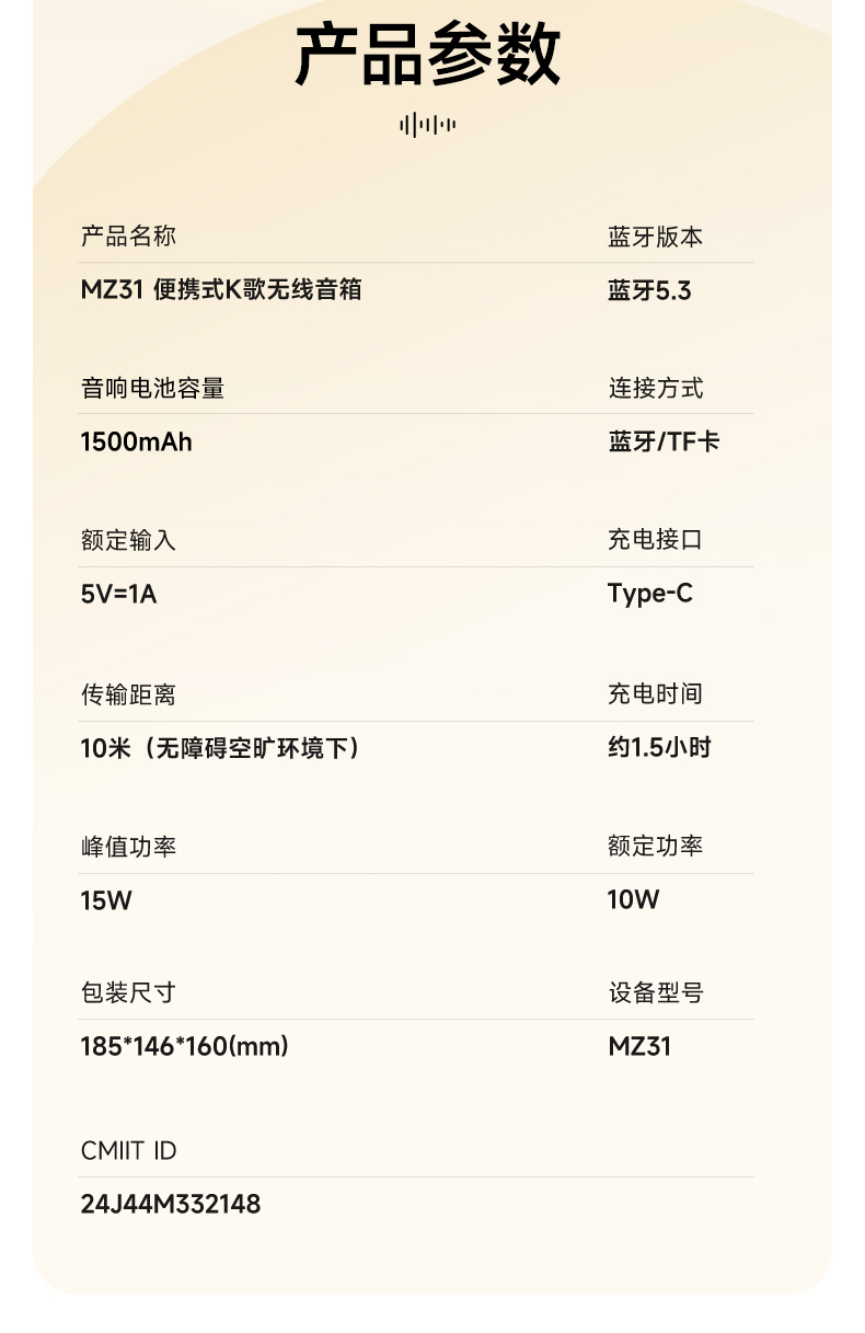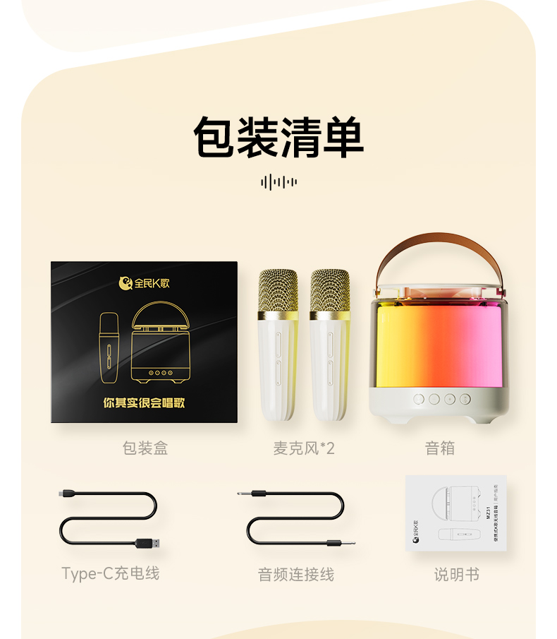全民K歌 分体式K歌音箱 MZ31 1500mAH 杏色(单位:套)