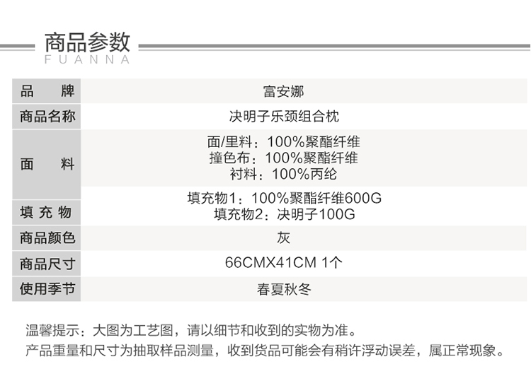 富安娜 决明子乐颈组合枕 8130010959085 64*41cm 灰(单位:个)