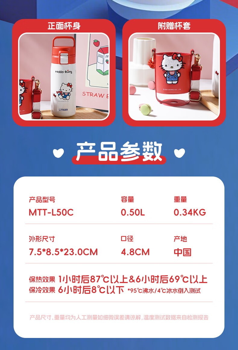 虎牌(TIGER) 保温杯 MTT-L50C-HelloKitty 500ml 钢琴白(单位:个)