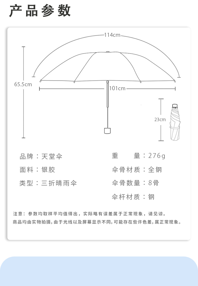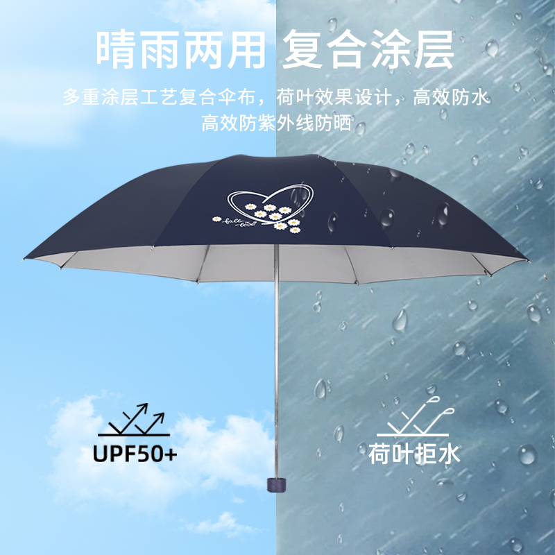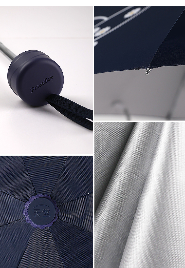 天堂 银胶三折全钢晴雨伞 30876EHL 57cmX8骨 藏青色(单位:把)