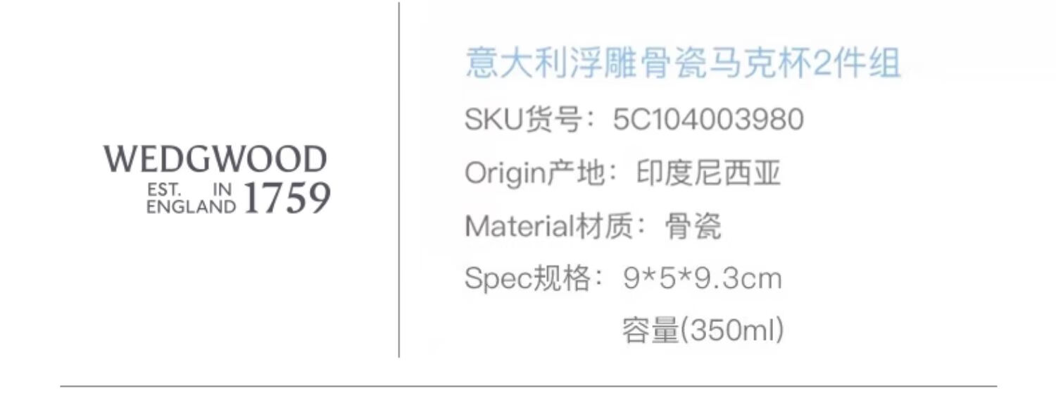 WEDGWOOD 意大利浮雕马克杯对杯 5C104003980S2 2件套350ml 白色(单位:套)