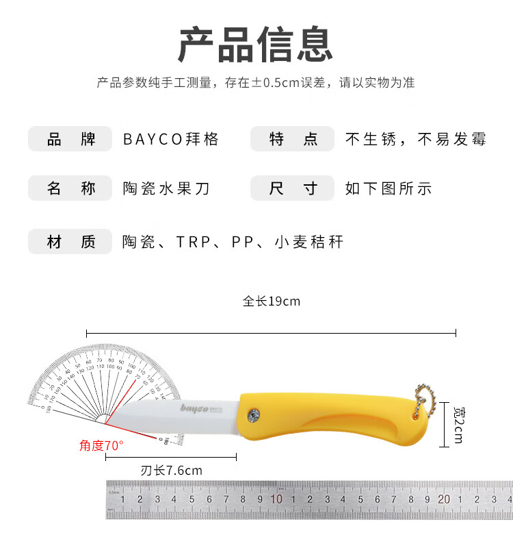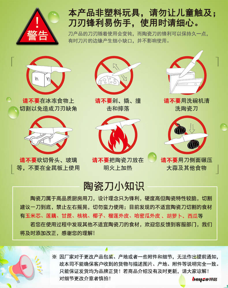 拜格(BAYCO) 陶瓷水果削皮刀 BD8002 3寸 绿色(单位:把)