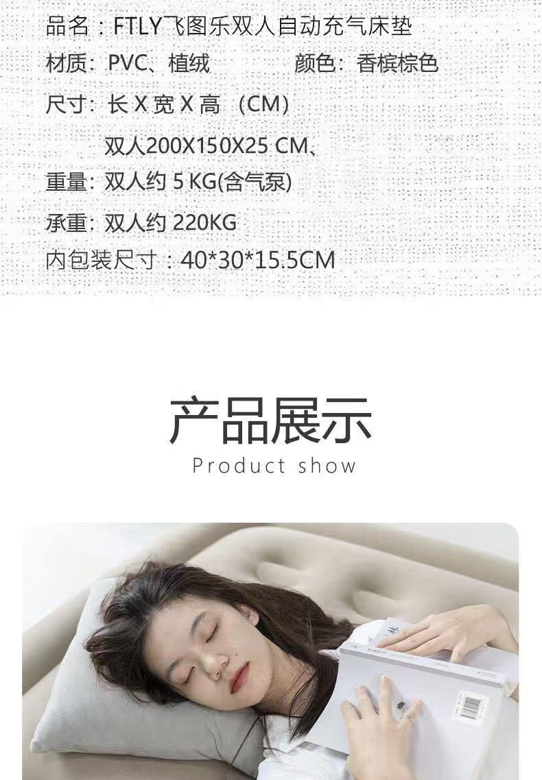 飞图乐(FTLY) 户外双人自动充气床垫套装 CQCD202 200×150×25CM 香槟棕色(单位:个)