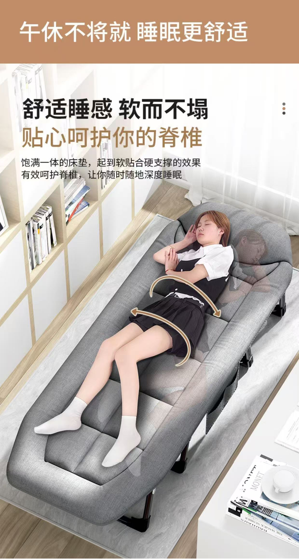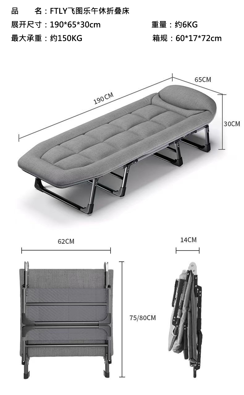飞图乐(FTLY) 八脚折叠午休床 ZDC0301 190*65*30cm 浅灰(单位:个)
