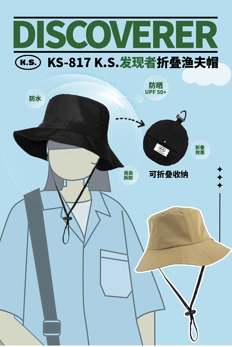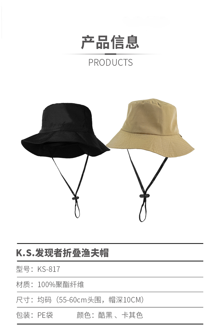 K.S. 发现者折叠渔夫帽 KS-817 均码 卡其色(单位:顶)