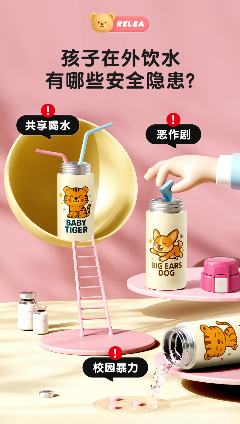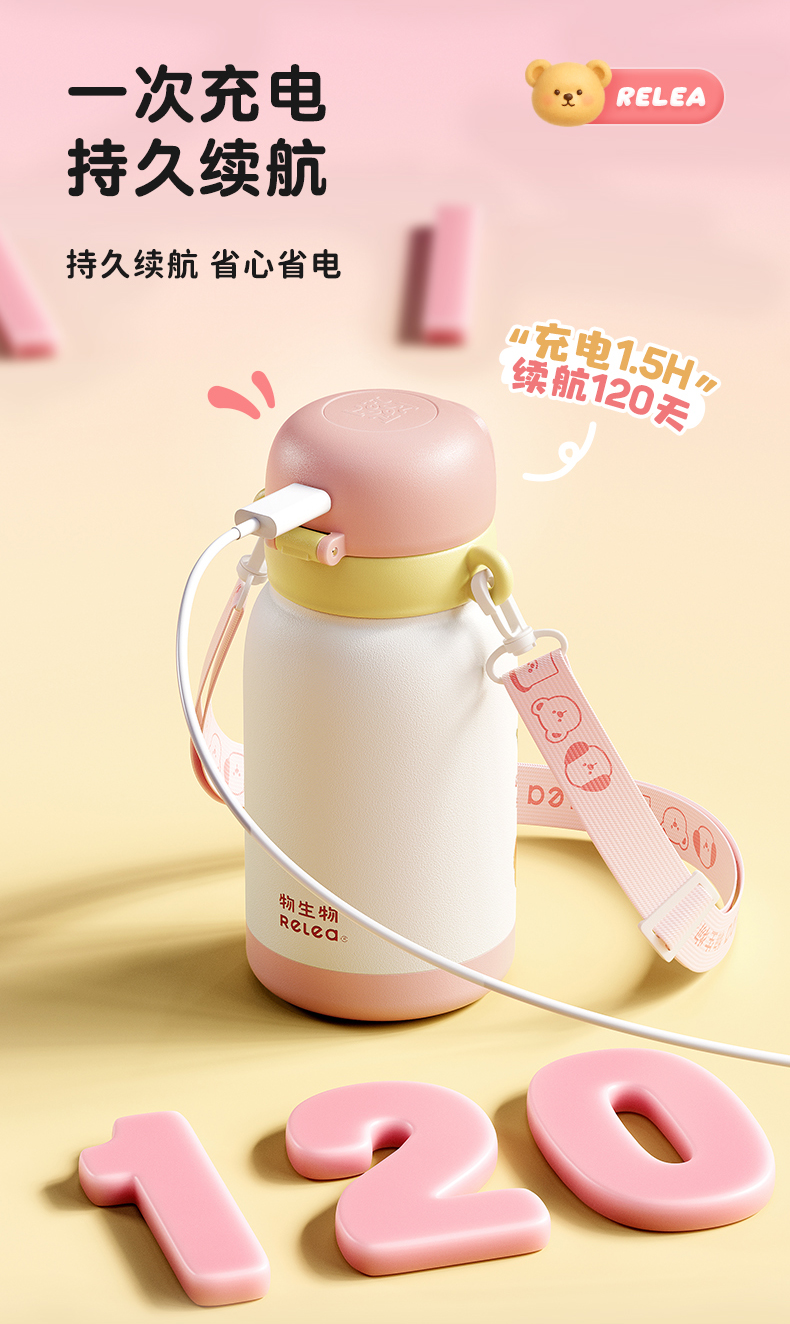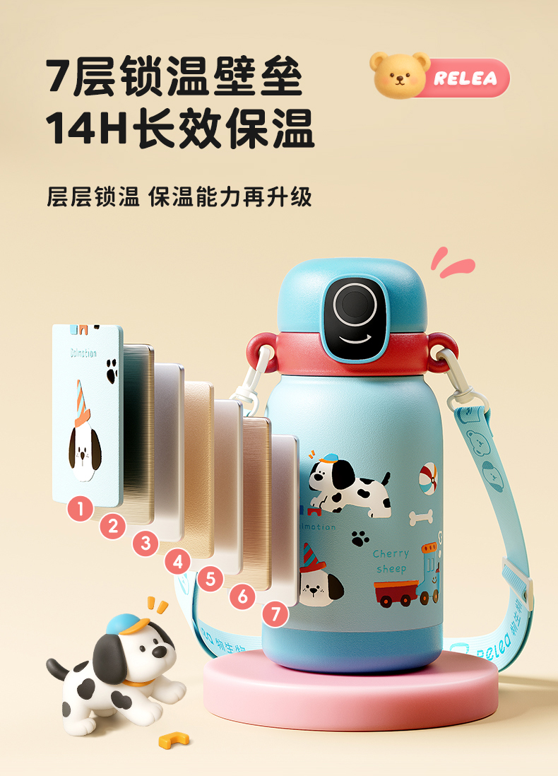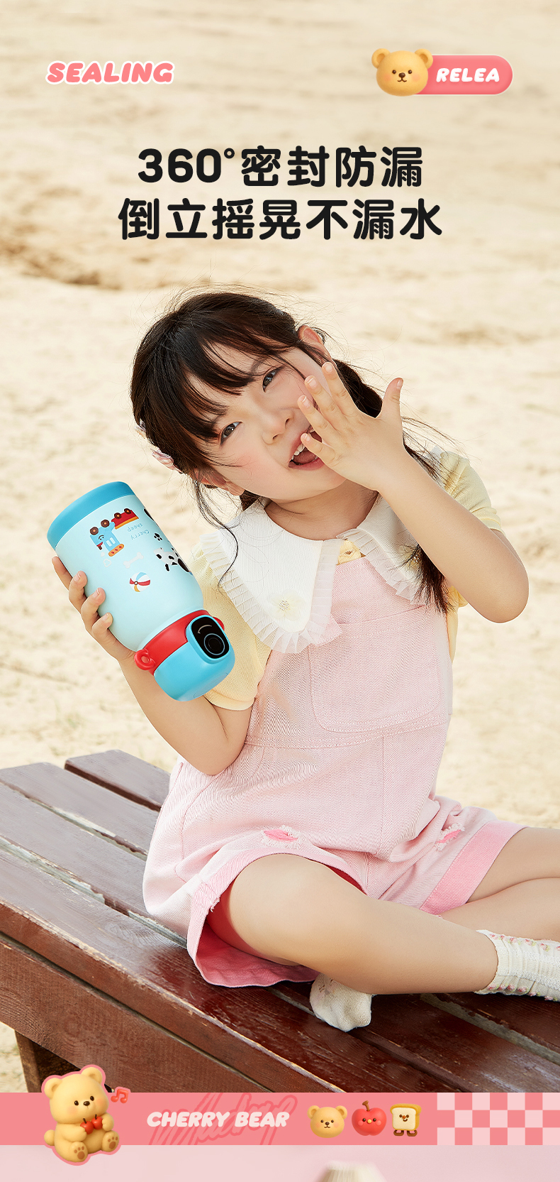 物生物(RELEA) 米乐派指纹儿童保温杯 JV012525-0550-FQ00 550ML 熊仔下午茶(粉)(单位:个)