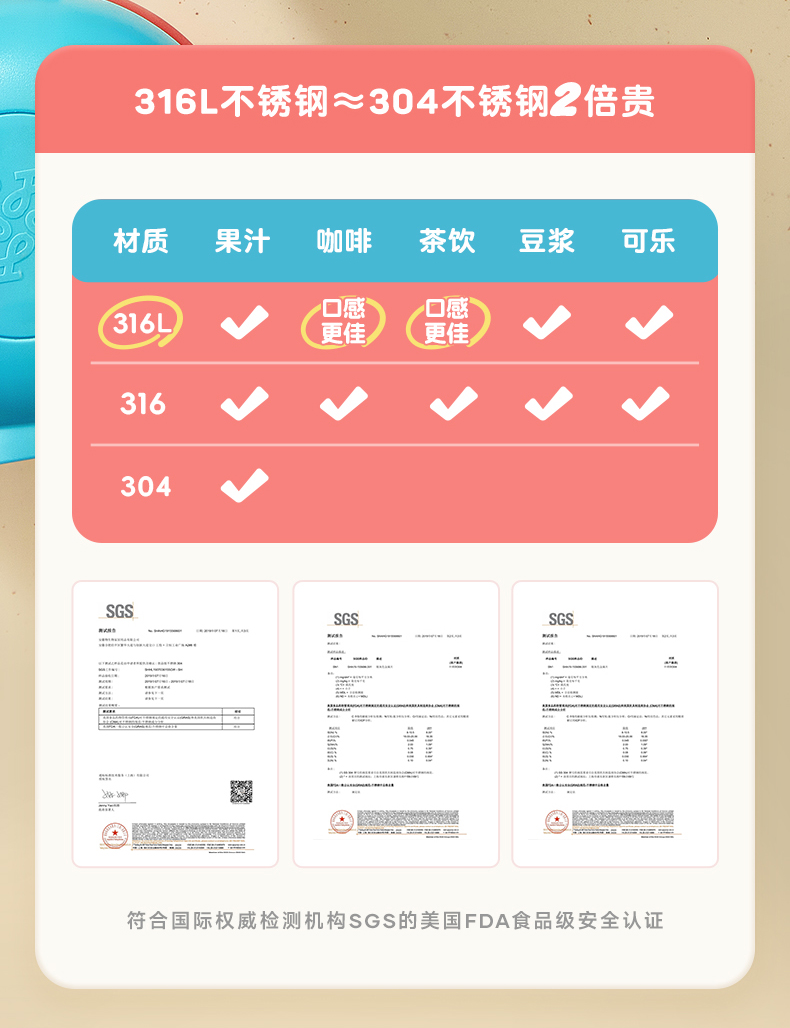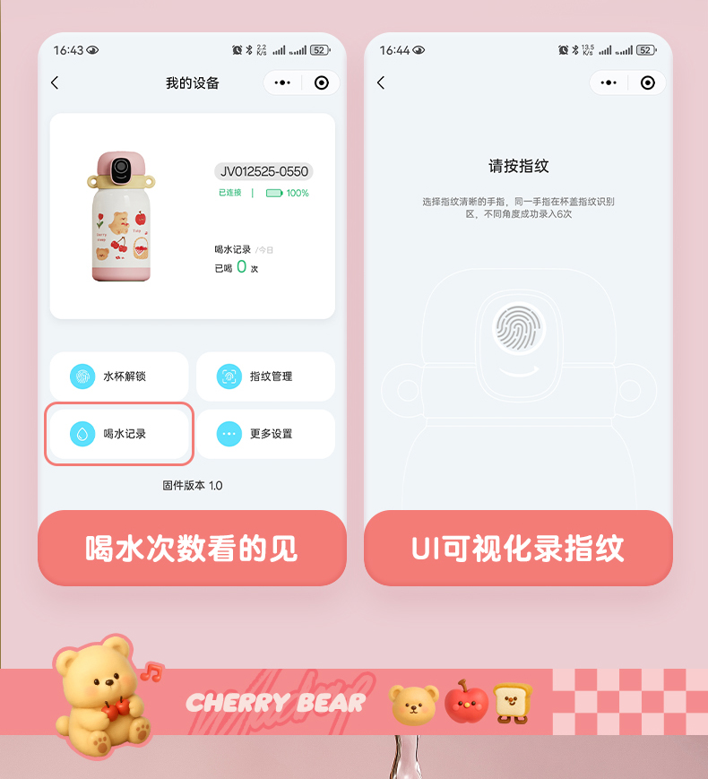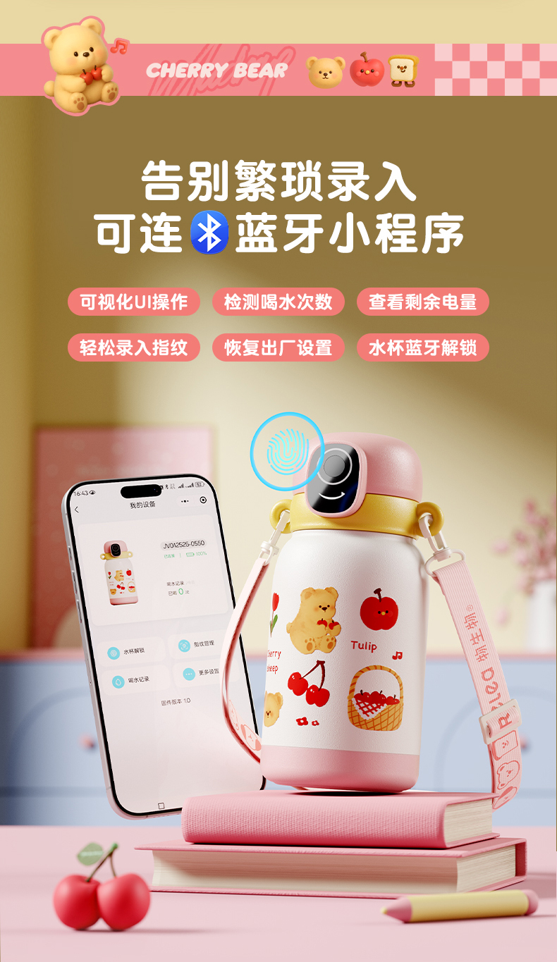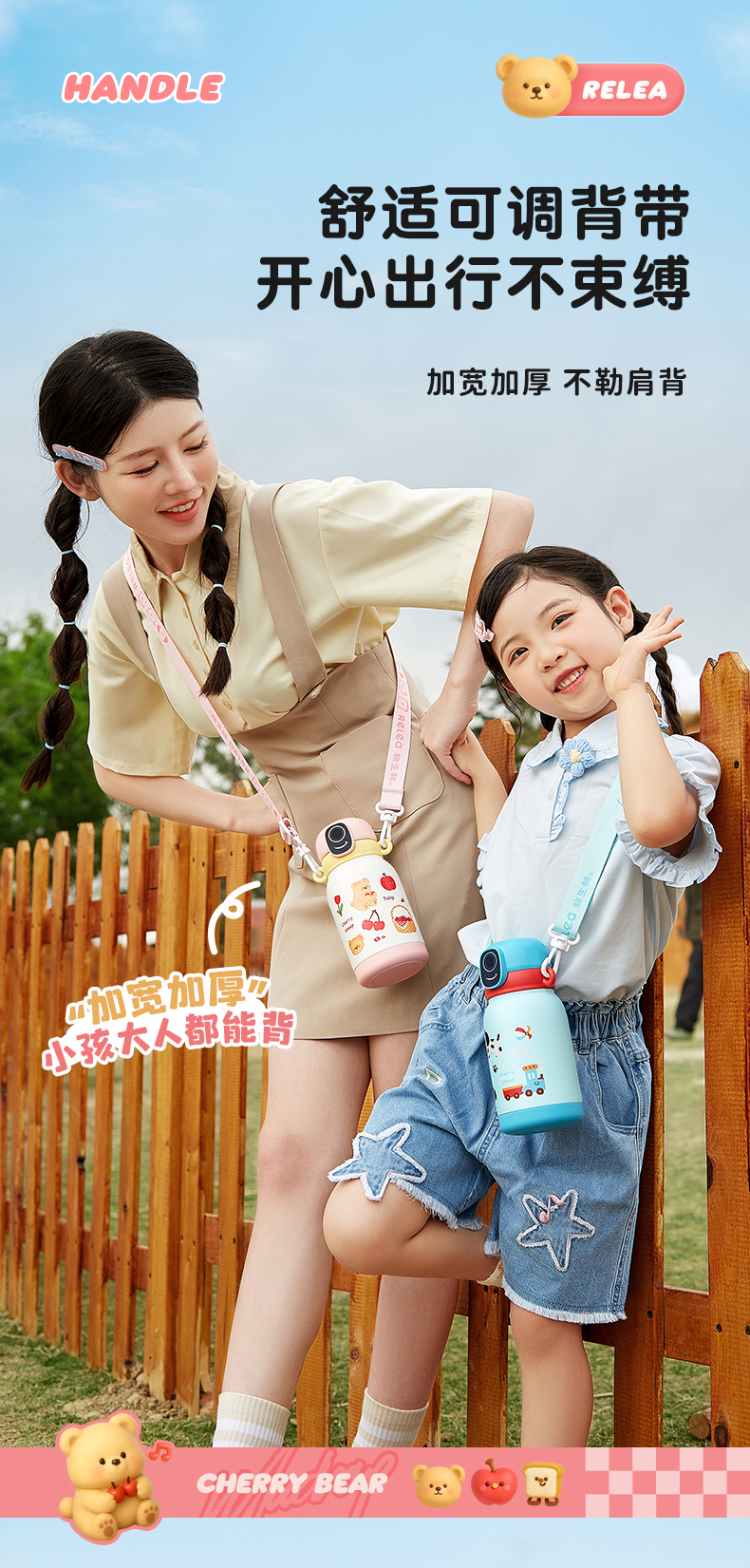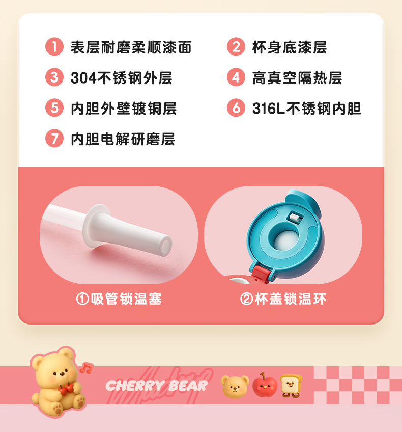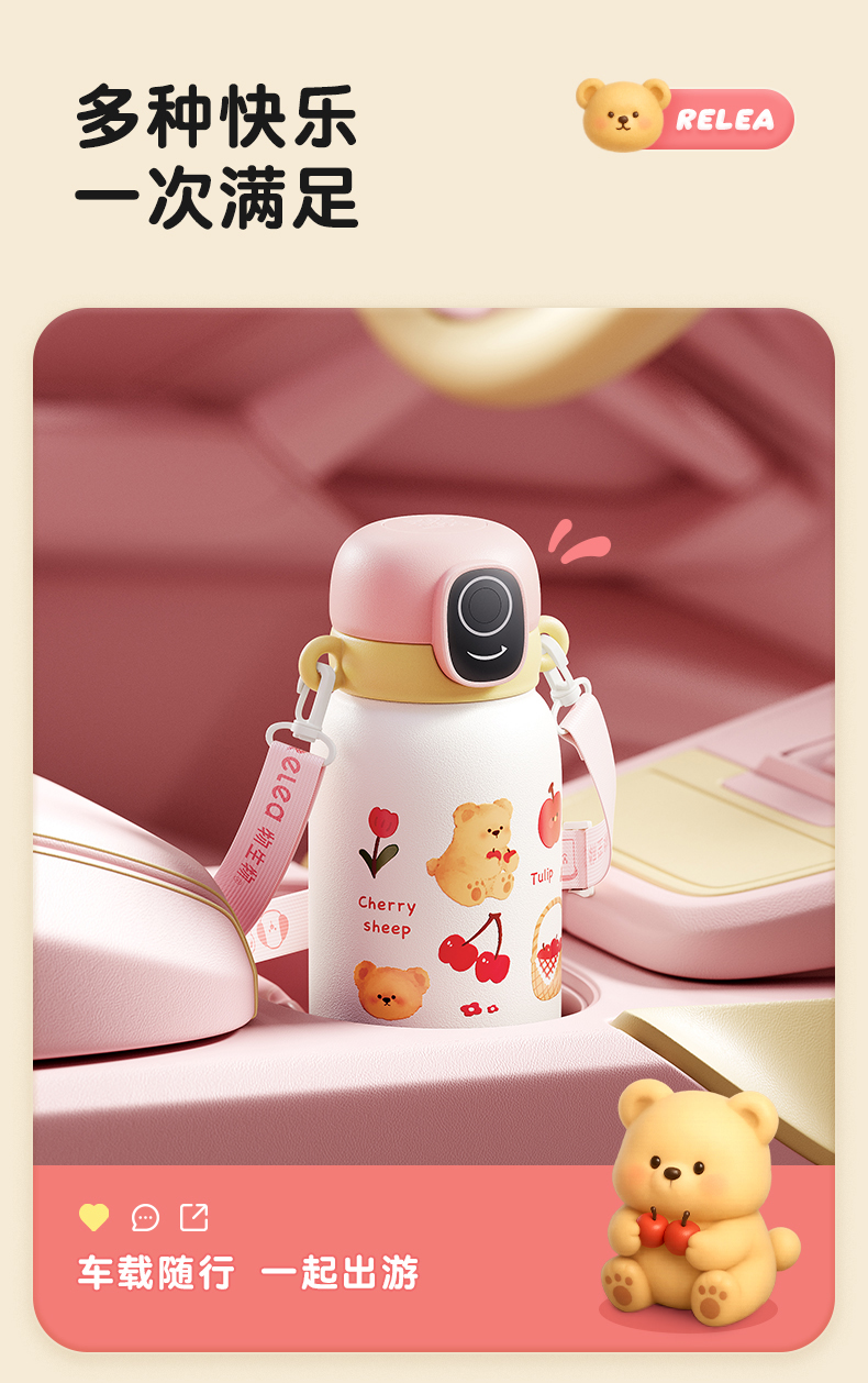 物生物(RELEA) 米乐派指纹儿童保温杯 JV012525-0550-FQ00 550ML 熊仔下午茶(粉)(单位:个)